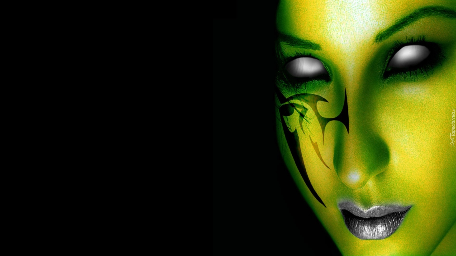 Edytor tapety: Kobieta, Zielona, Cera