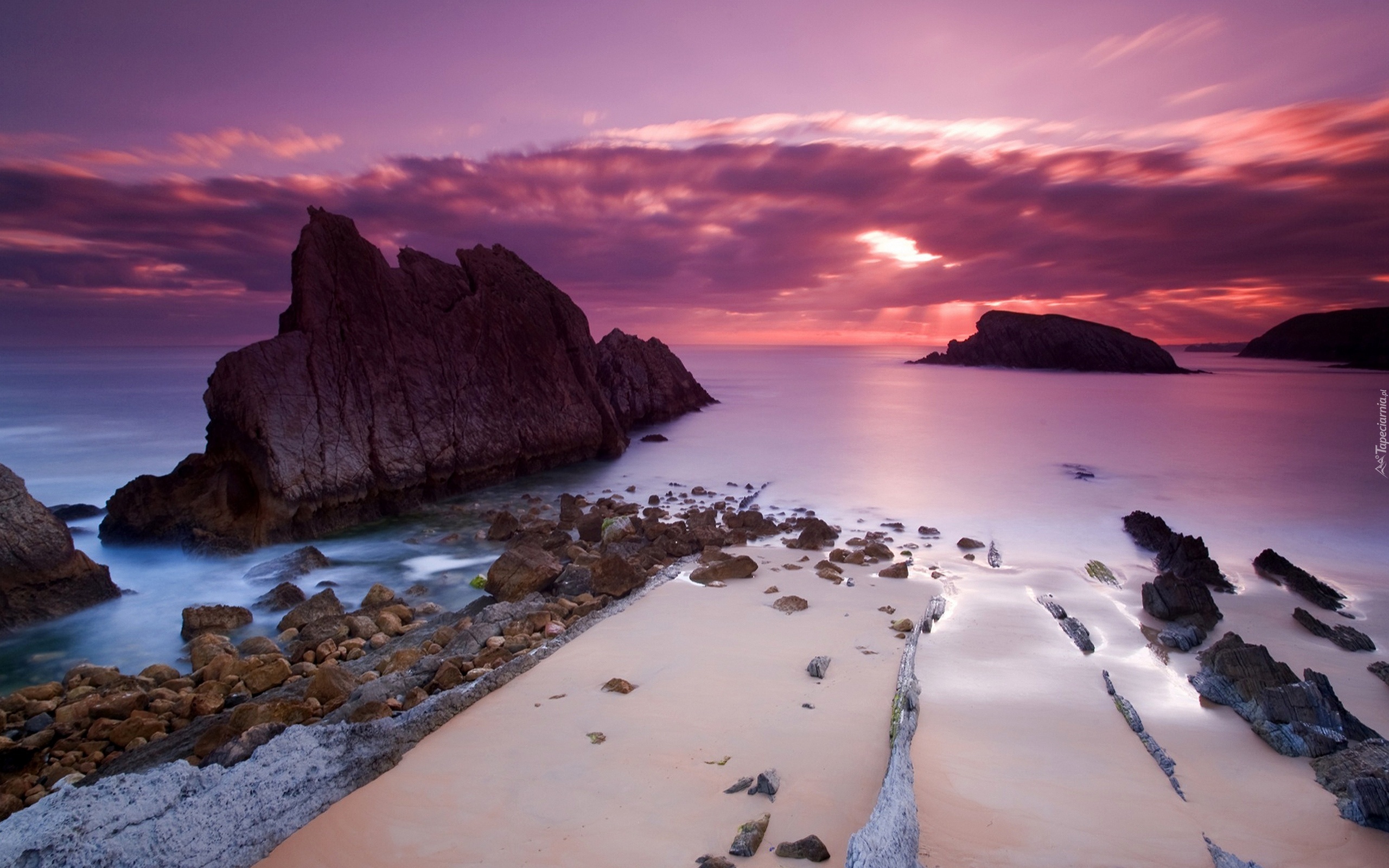 Edytor tapety: Zachód, Słońca, Morze, Skały