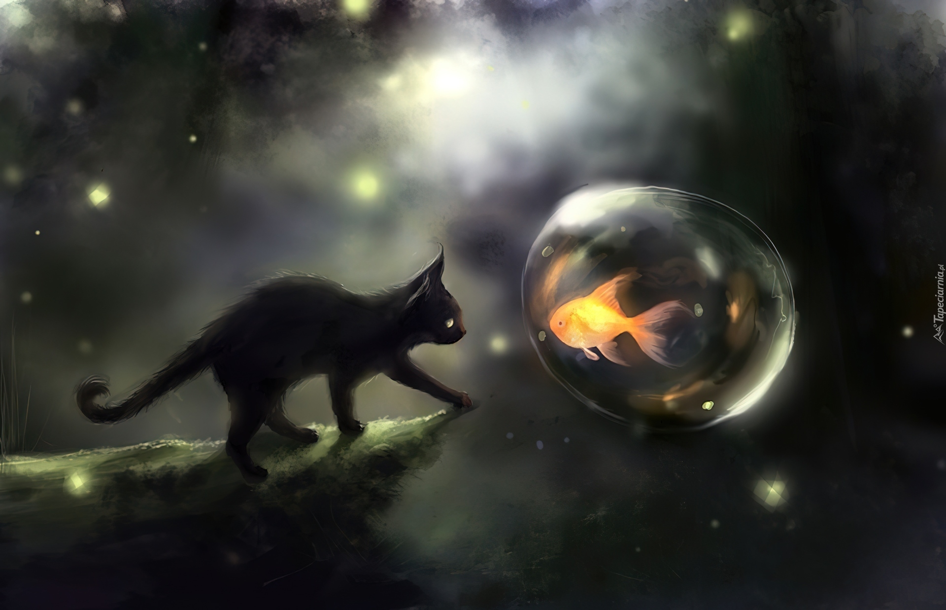 Edytor tapety: Kot, Bańka, Ryba, Grafika 3D