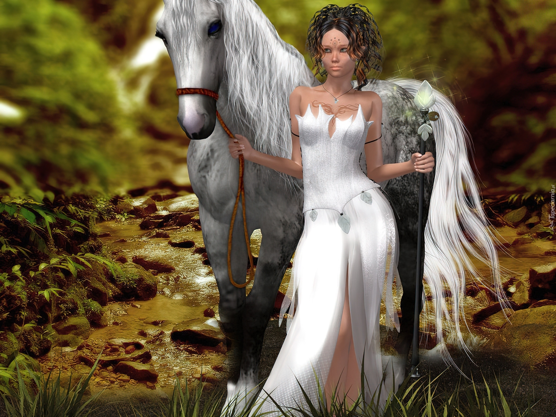 Edytor tapety: Kobieta, Koń, Kamienie, Woda