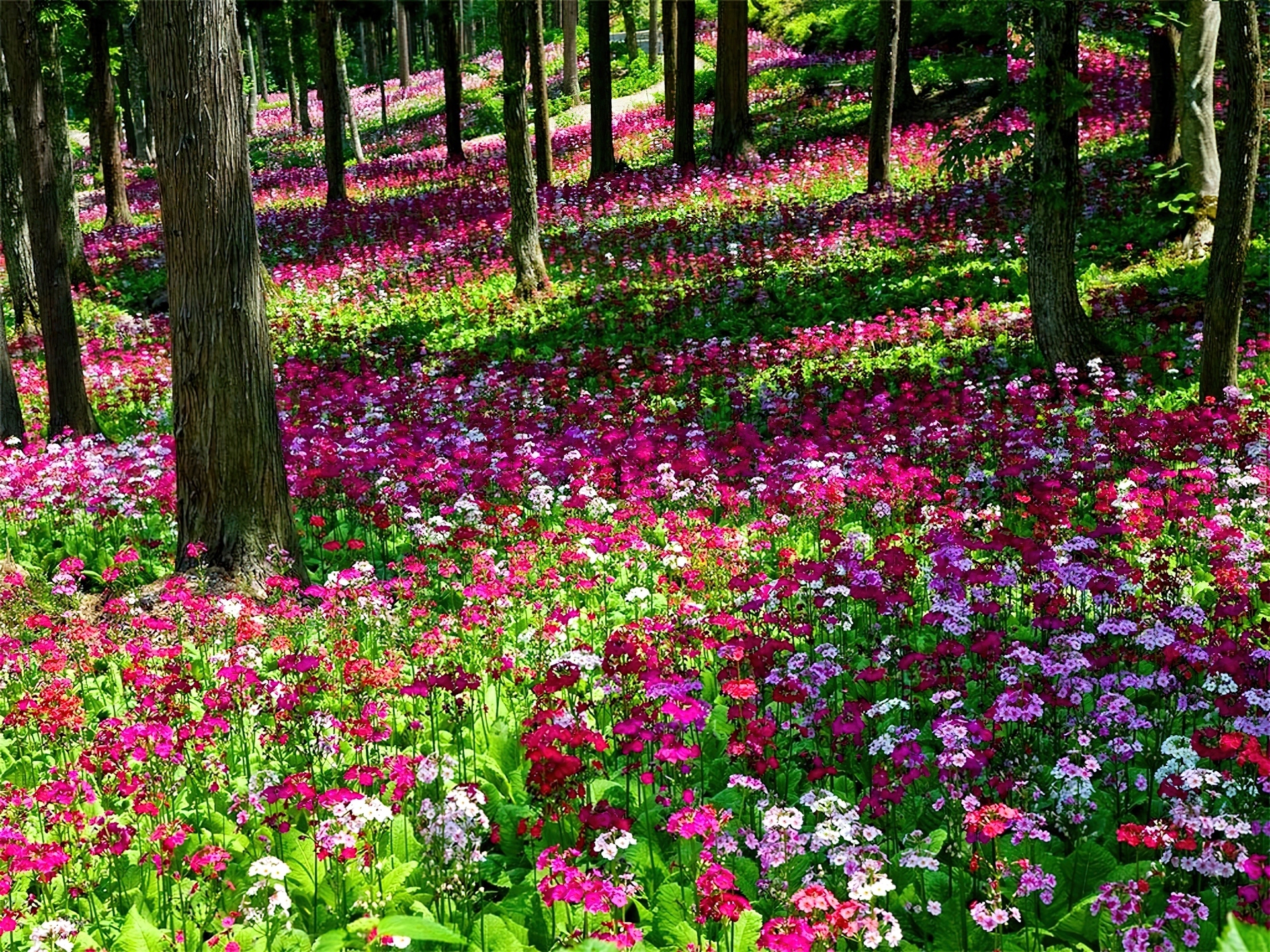 Edytor tapety: Drzewa, Łąka, Kolorowe, Kwiaty