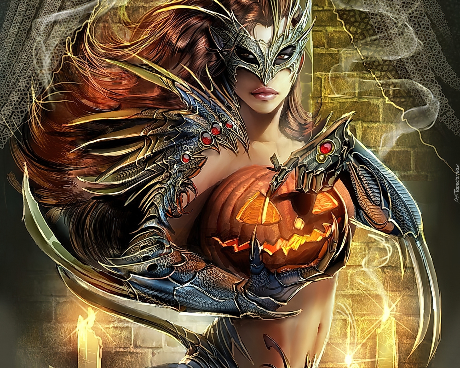 Edytor tapety: Kobieta, Dynia, Świeca, Maska