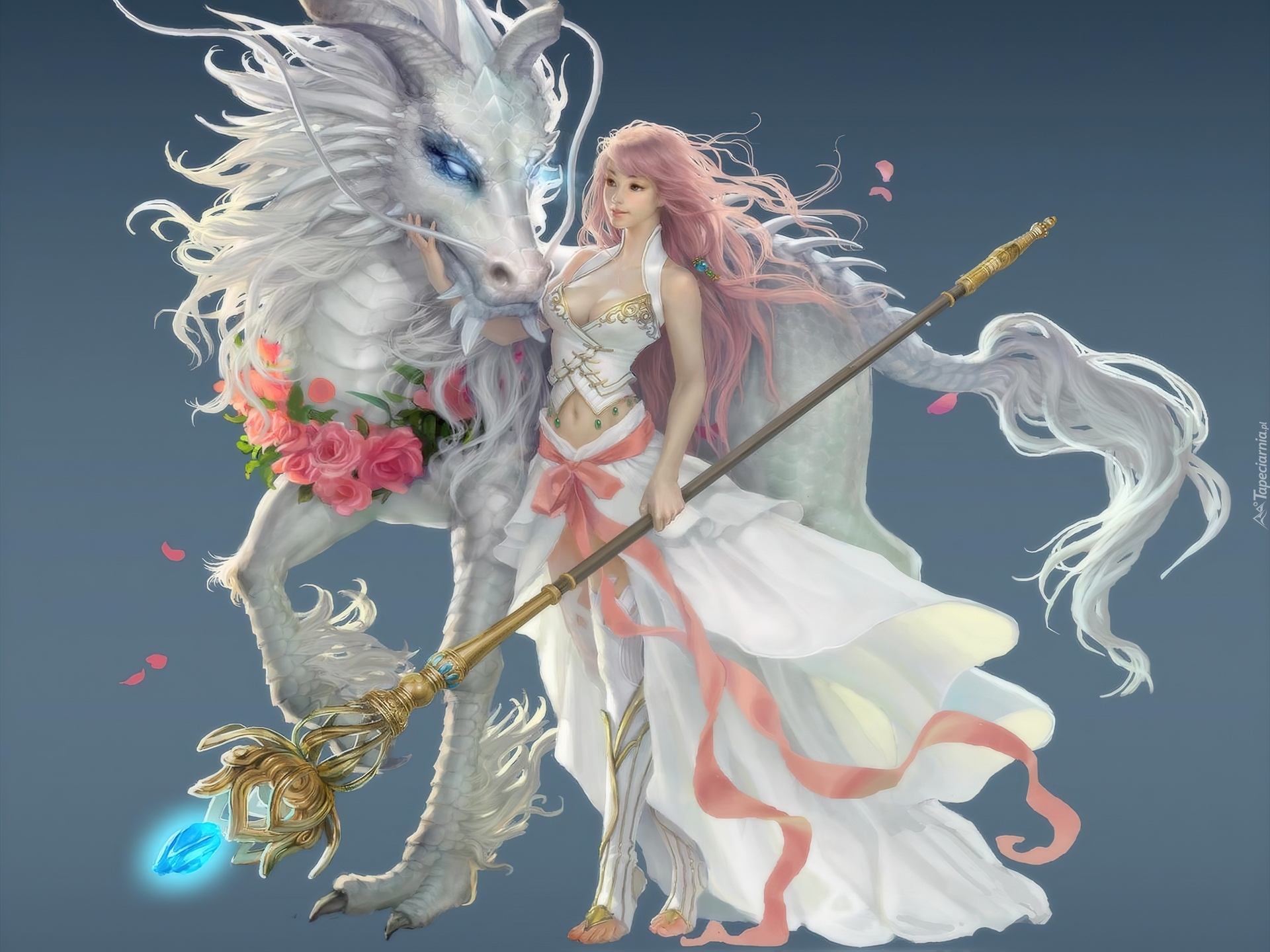 Edytor tapety: Kobieta, Opiekunka, Smok