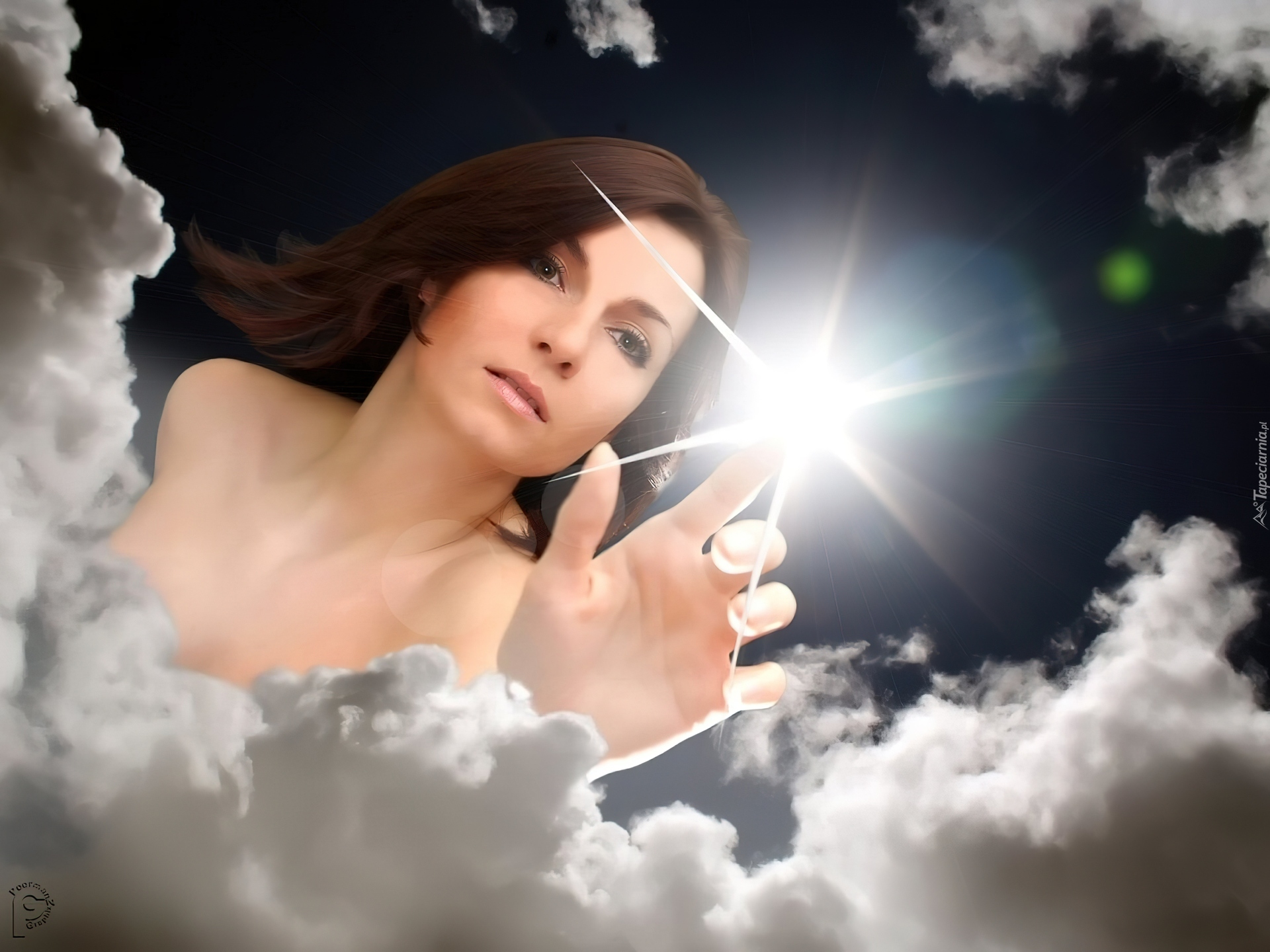 Edytor tapety: Kobieta, Chmury, Światło, Kontakt