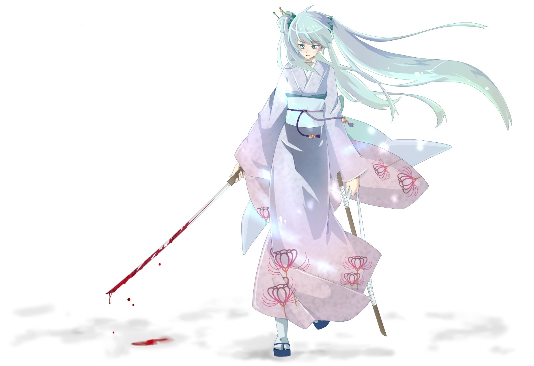 Edytor tapety: Hatsune Miku, Katana, Krew