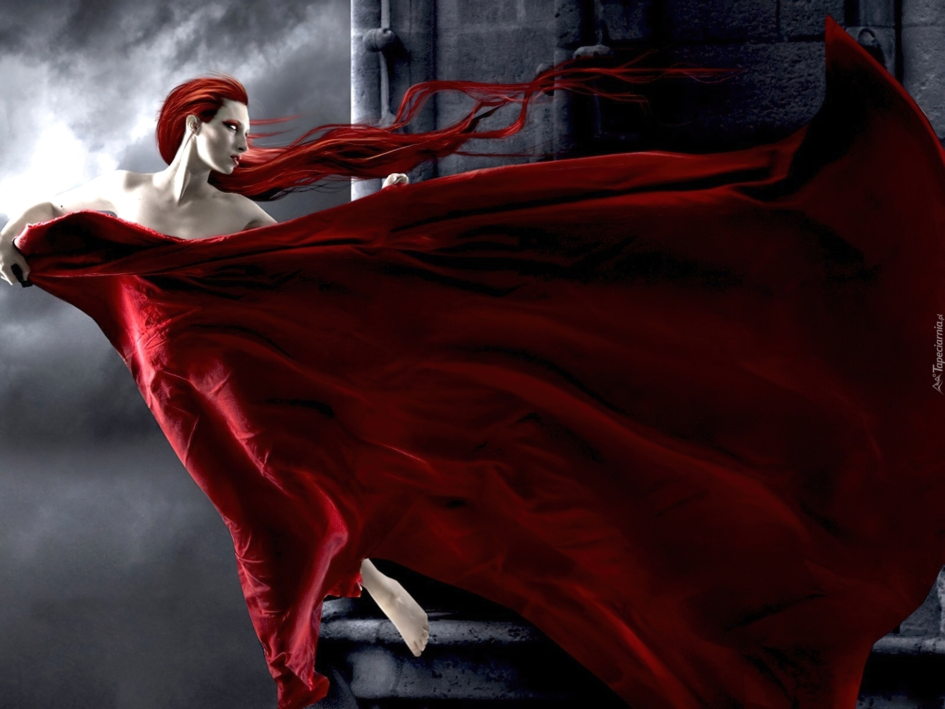 Edytor tapety: Kobieta, Czerwone, Włosy, Peleryna