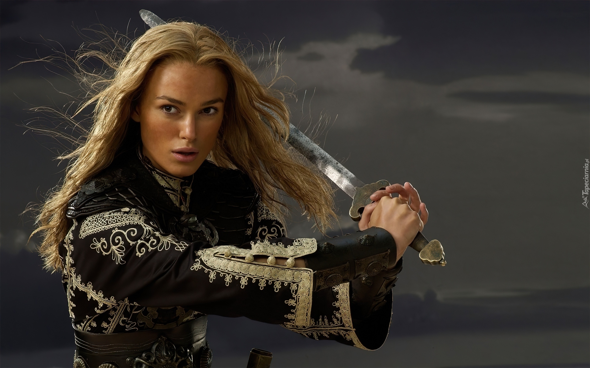 Edytor tapety: Dziewczyna, Wojowniczka, Miecz, Noc