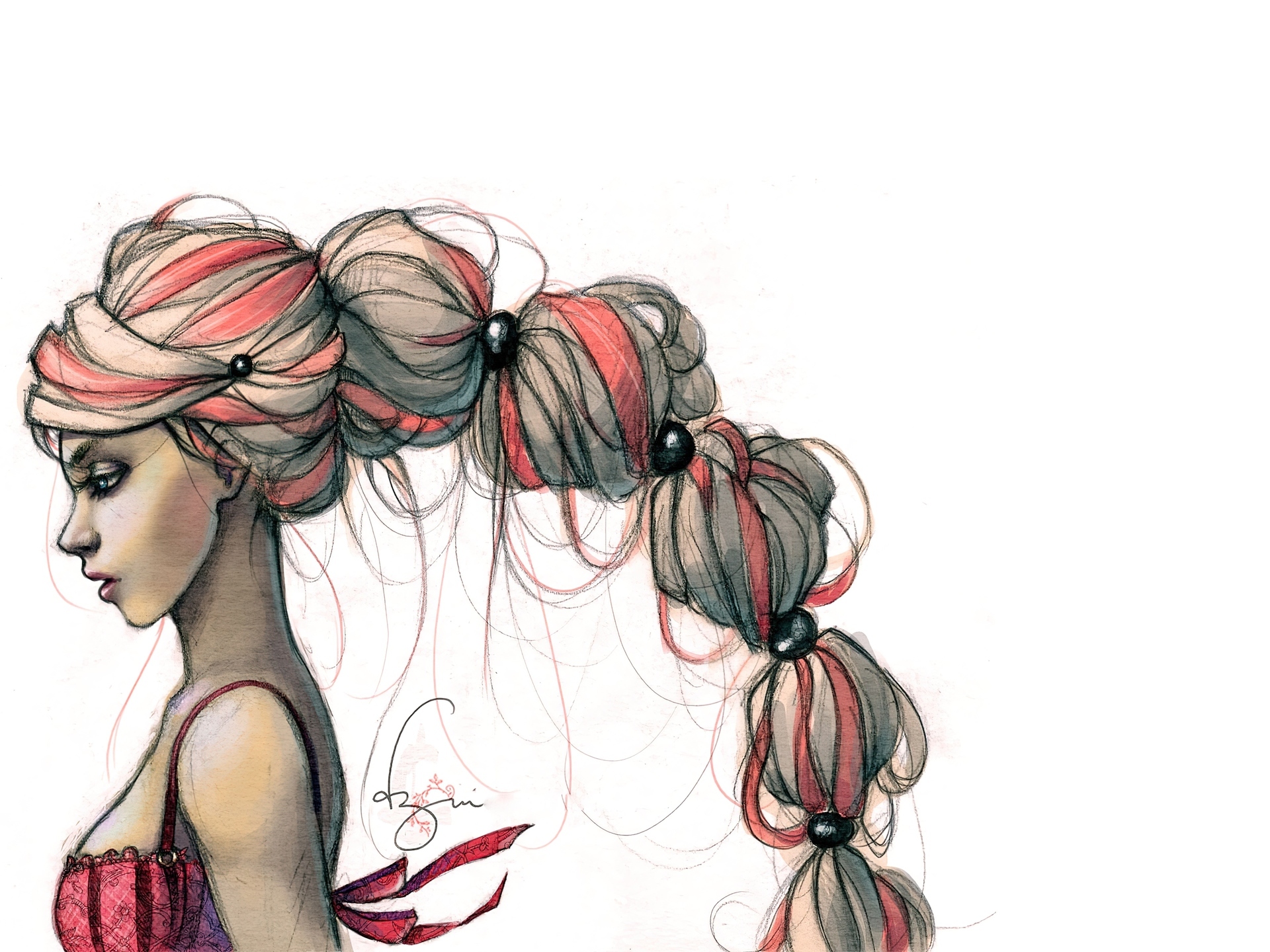Edytor tapety: Kobieta, Włosy, Kucyk, Rysunek