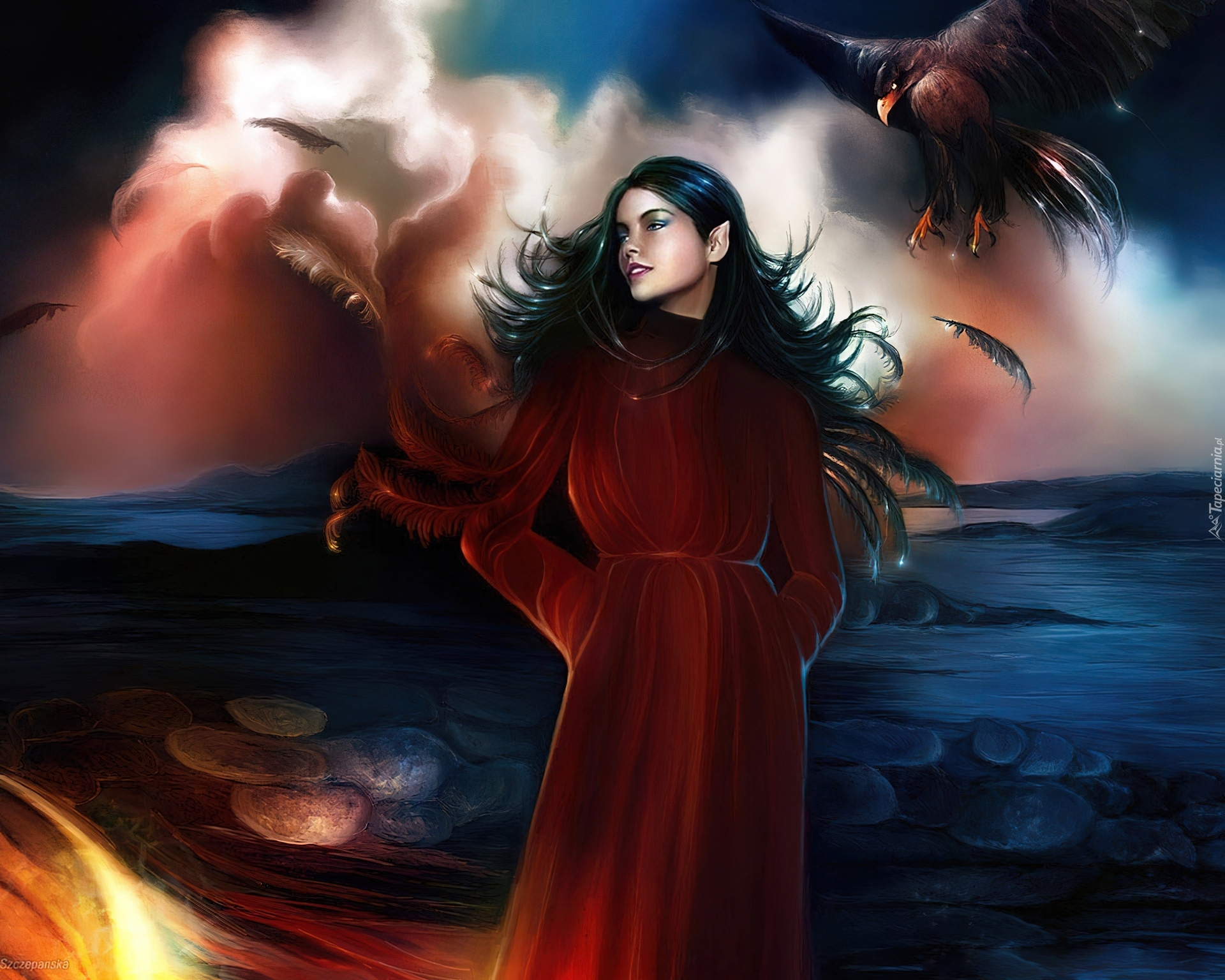Edytor tapety: Kobieta, Płaszcz, Ptaki