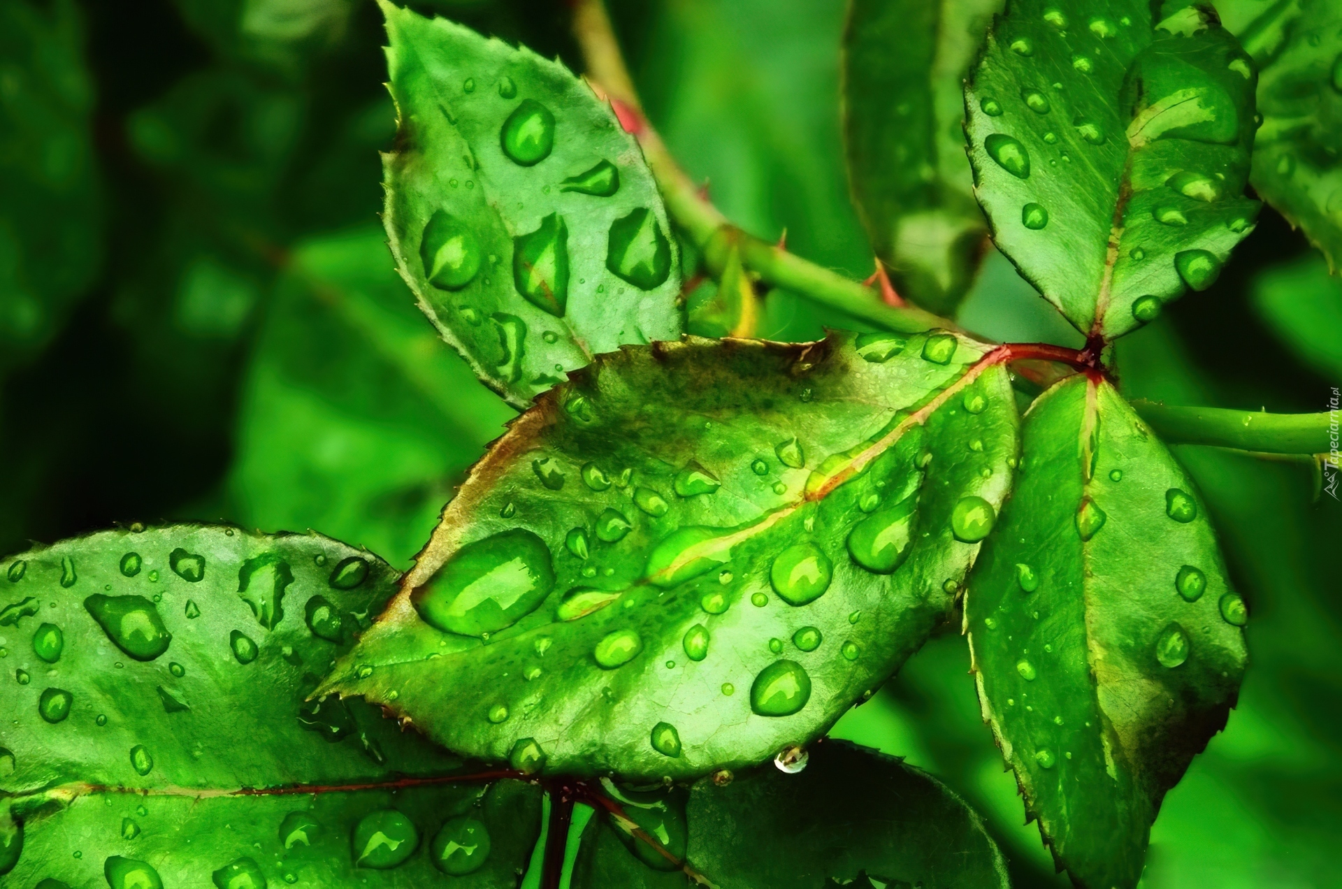 Edytor tapety: Zielone, Liście, Krople, Wody