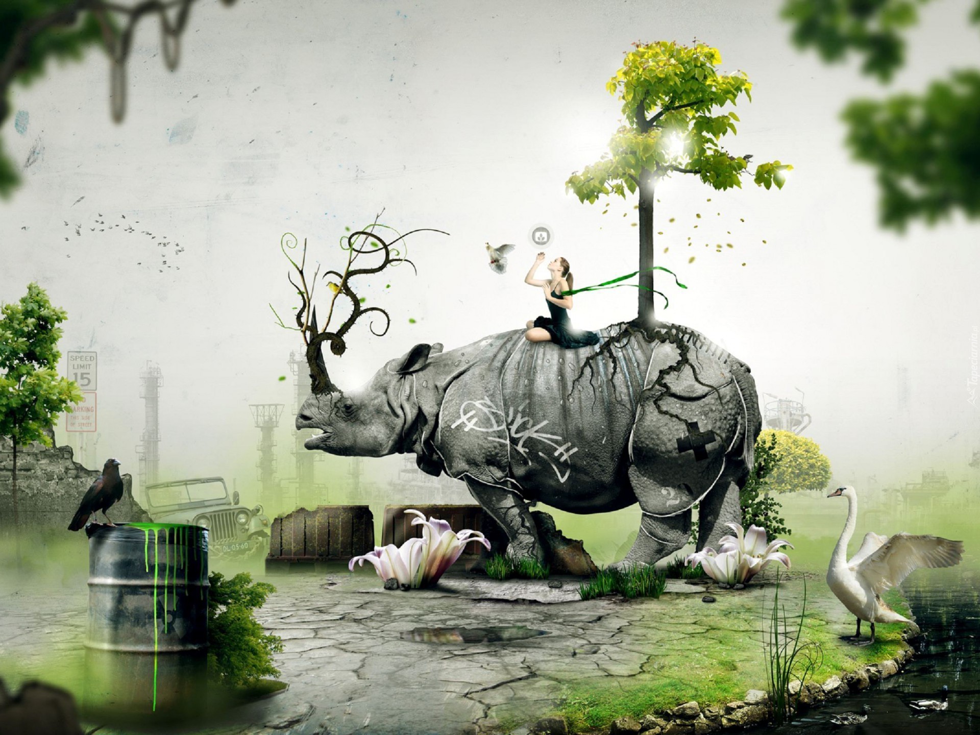 Edytor tapety: Nosorożec, Kobieta