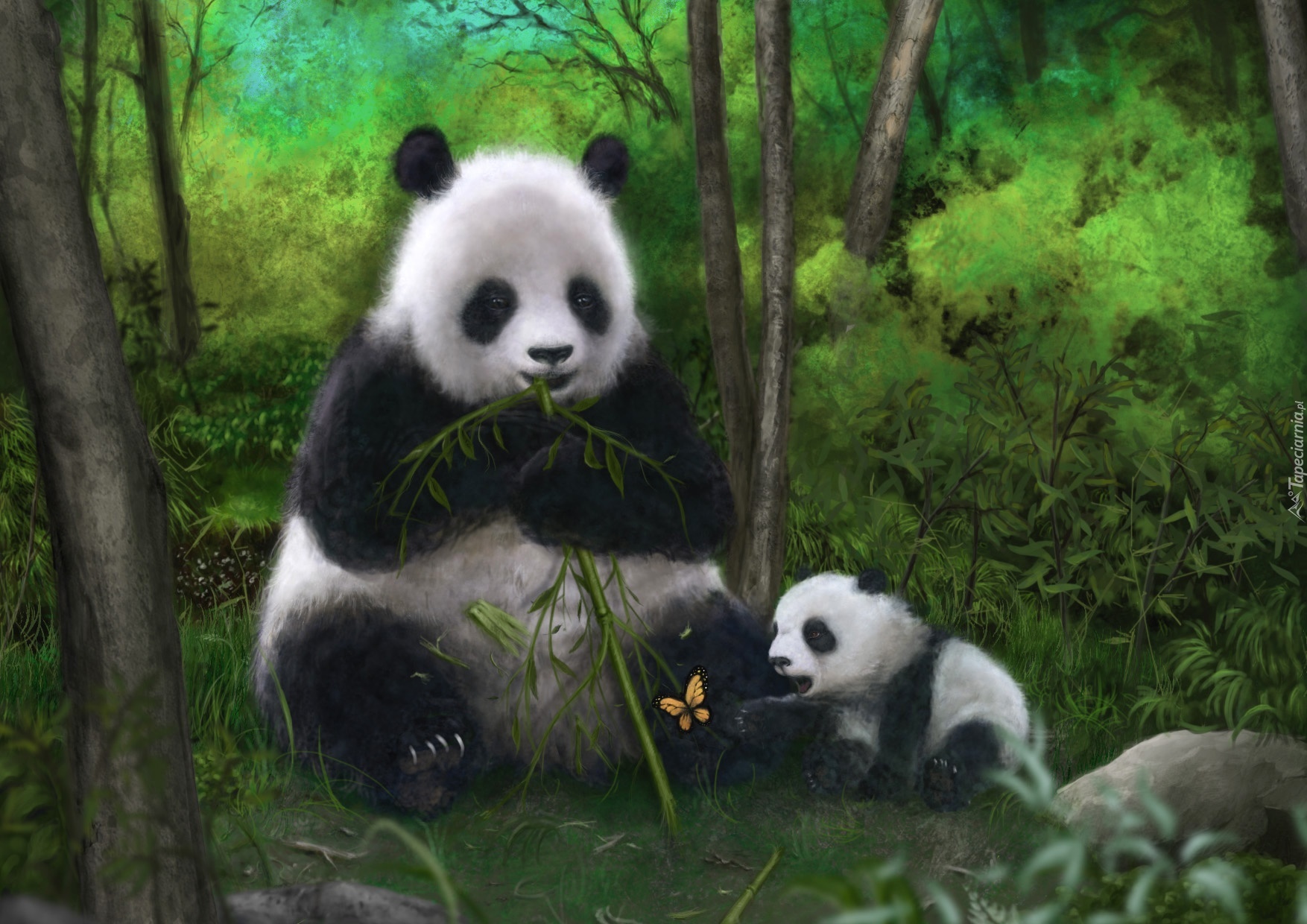 Edytor tapety: Pandy, Bambus, Motyl
