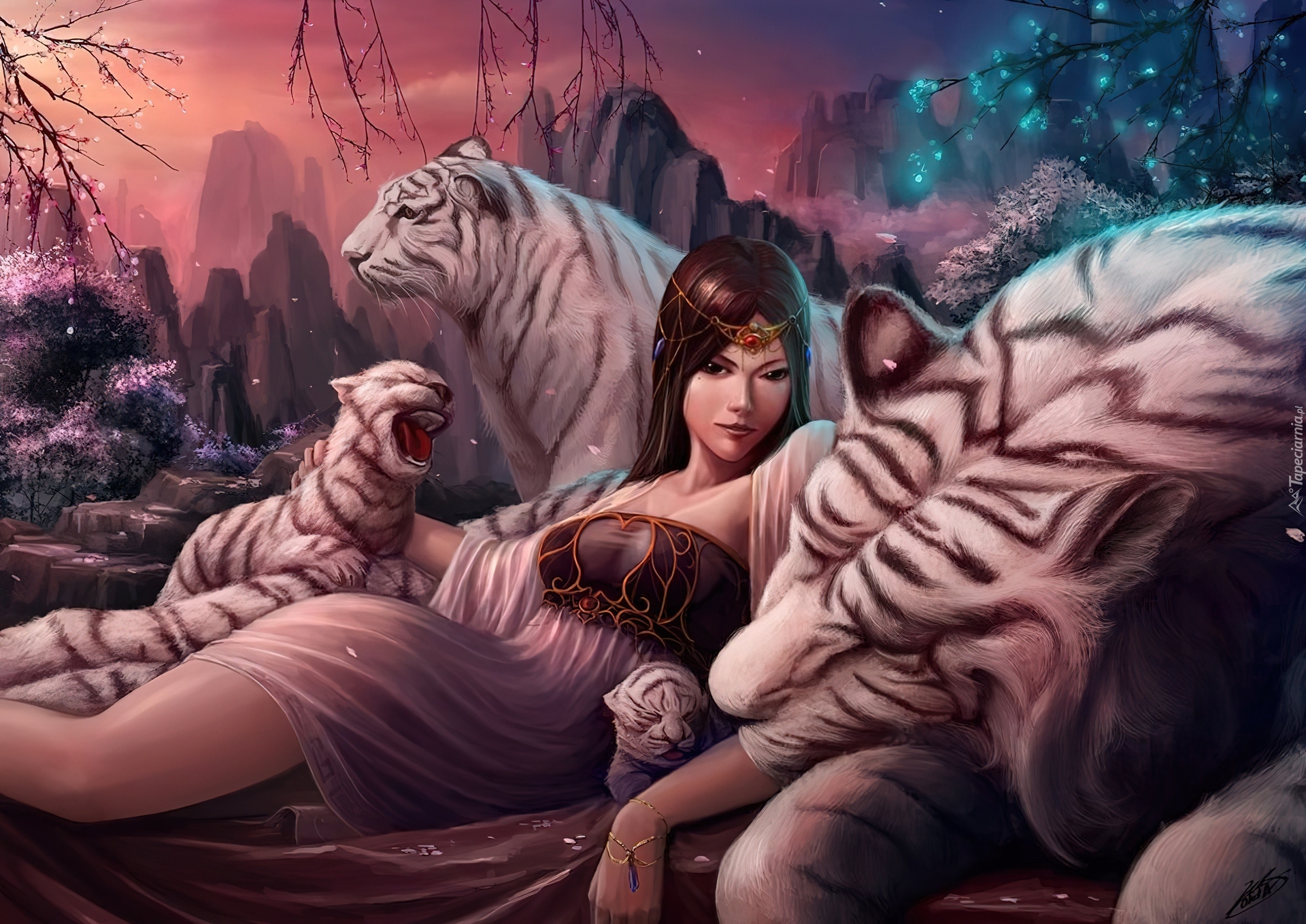 Edytor tapety: Kobieta, Tygrysy