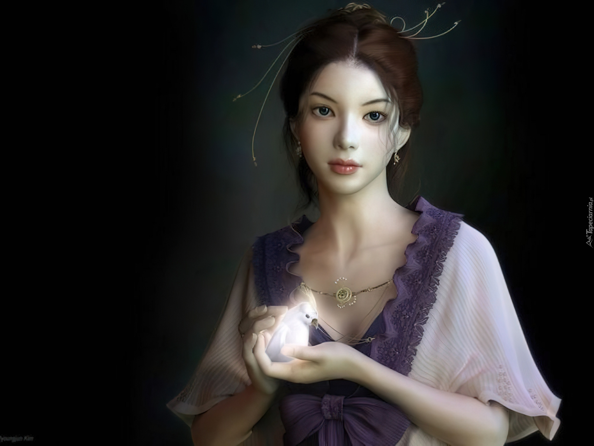 Edytor tapety: Dziewczyna, Ptak, Łagodność