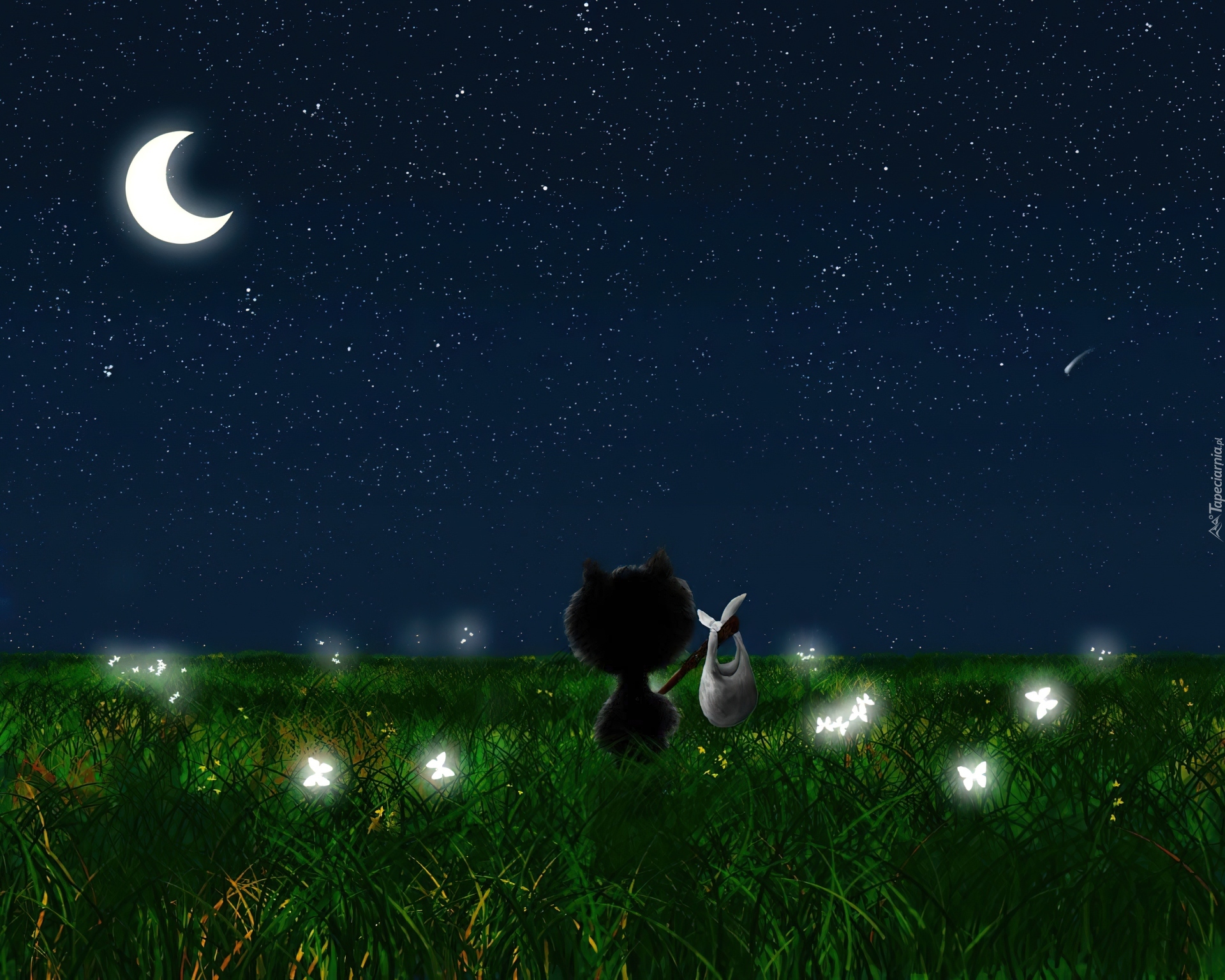 Edytor tapety: Kotek, Gwieździsta, Noc