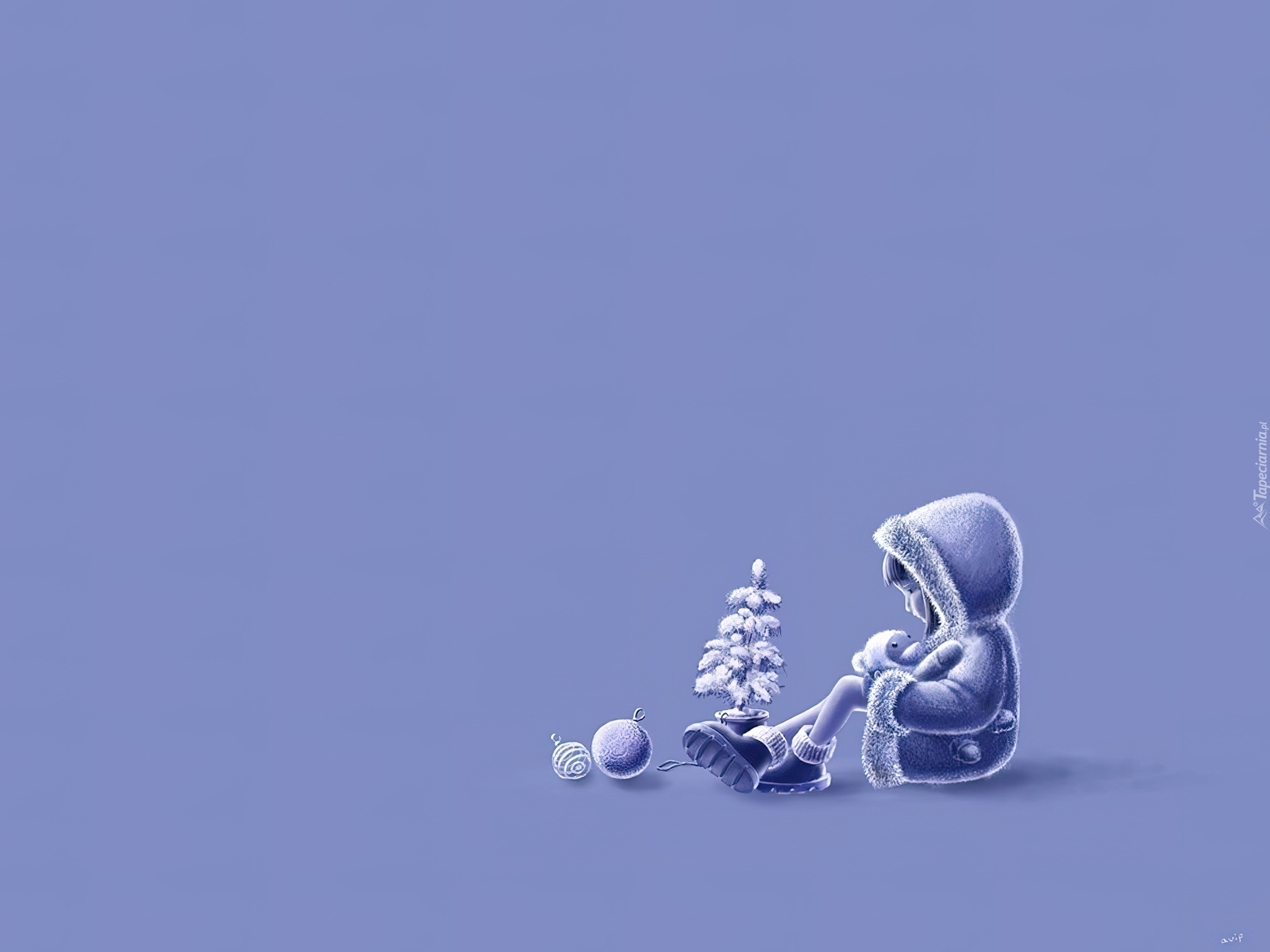 Edytor tapety: Dziewczynka, Choinka, Bombka