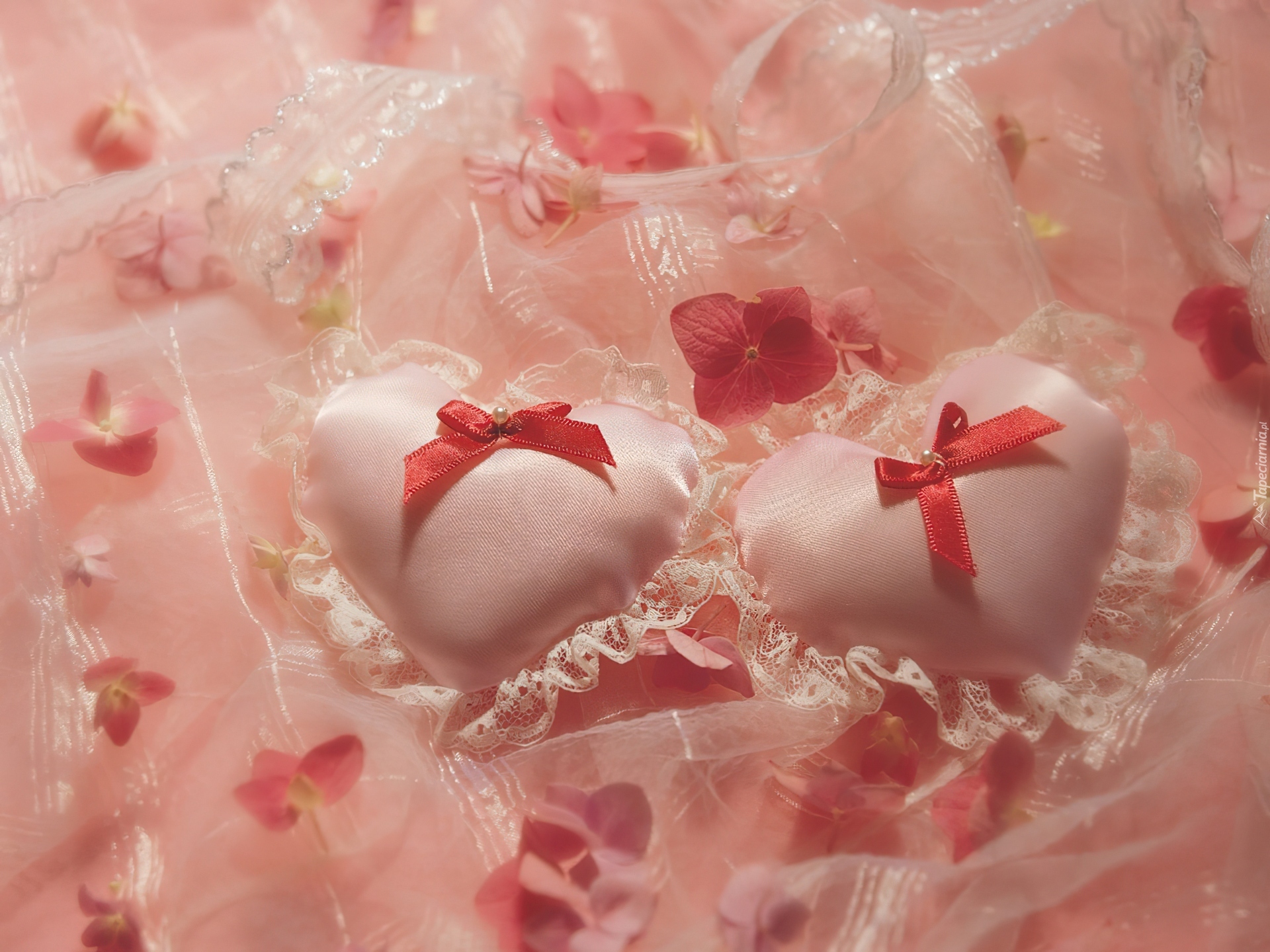 Edytor tapety: Dwa, Serduszka, Kokardki