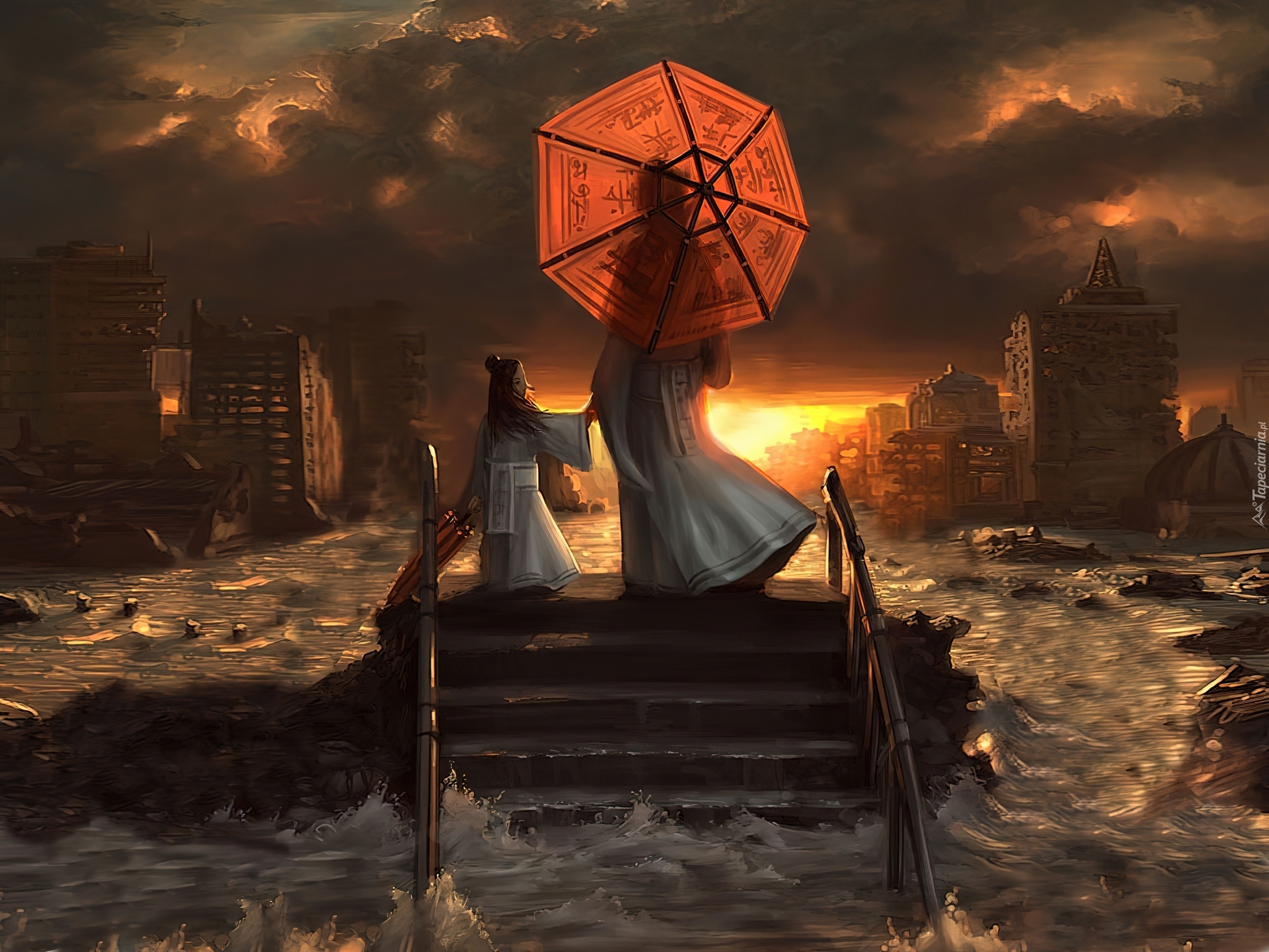 Edytor tapety: Kobieta, Dziecko, Schody, Woda