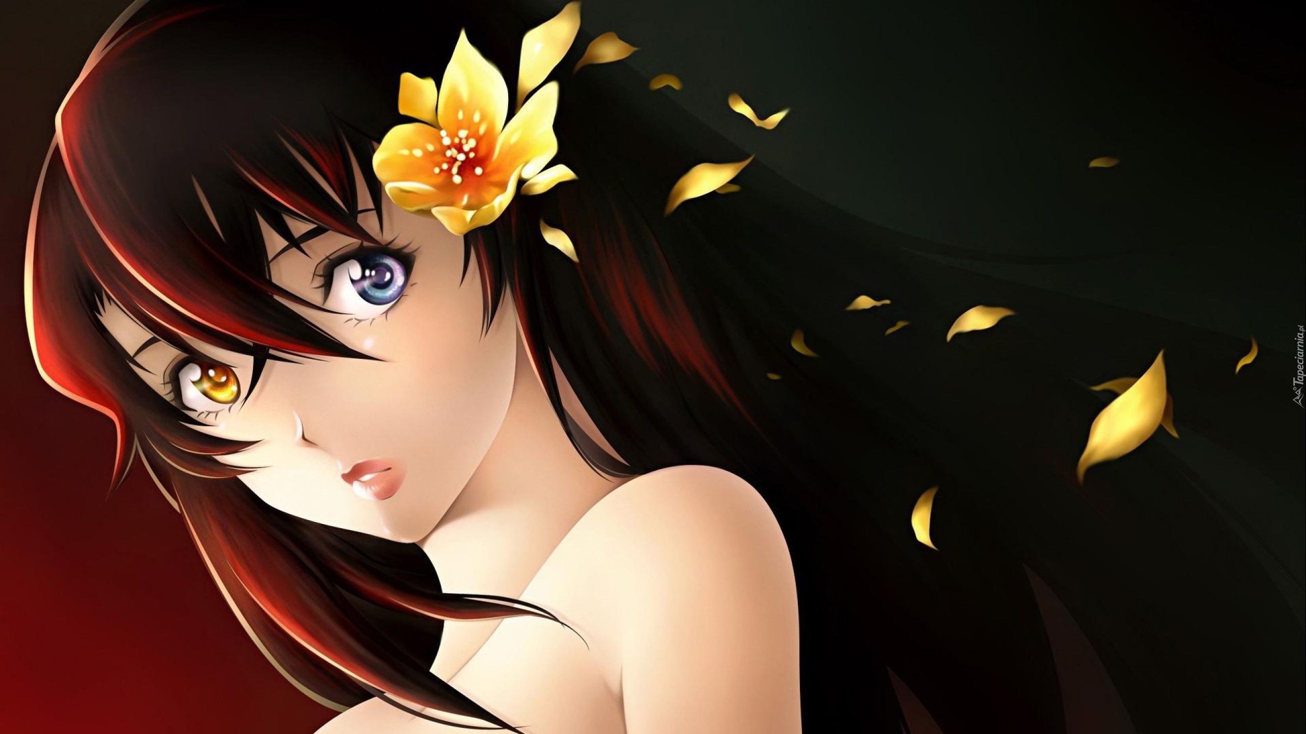Edytor tapety: Dziewczyna, Kwiat, We, Włosach, Płatki
