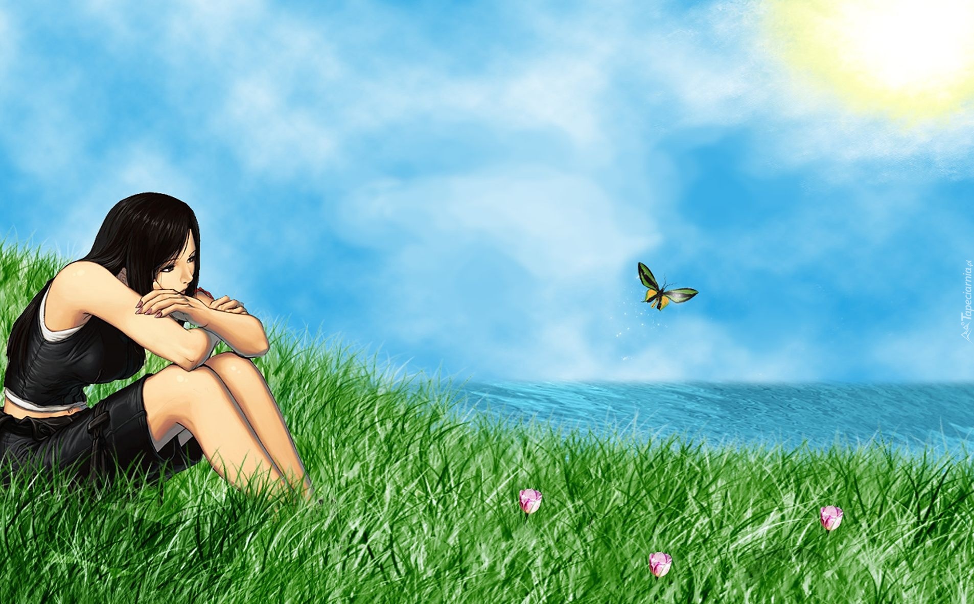 Edytor tapety: Zamyślona, Kobieta, Trawa