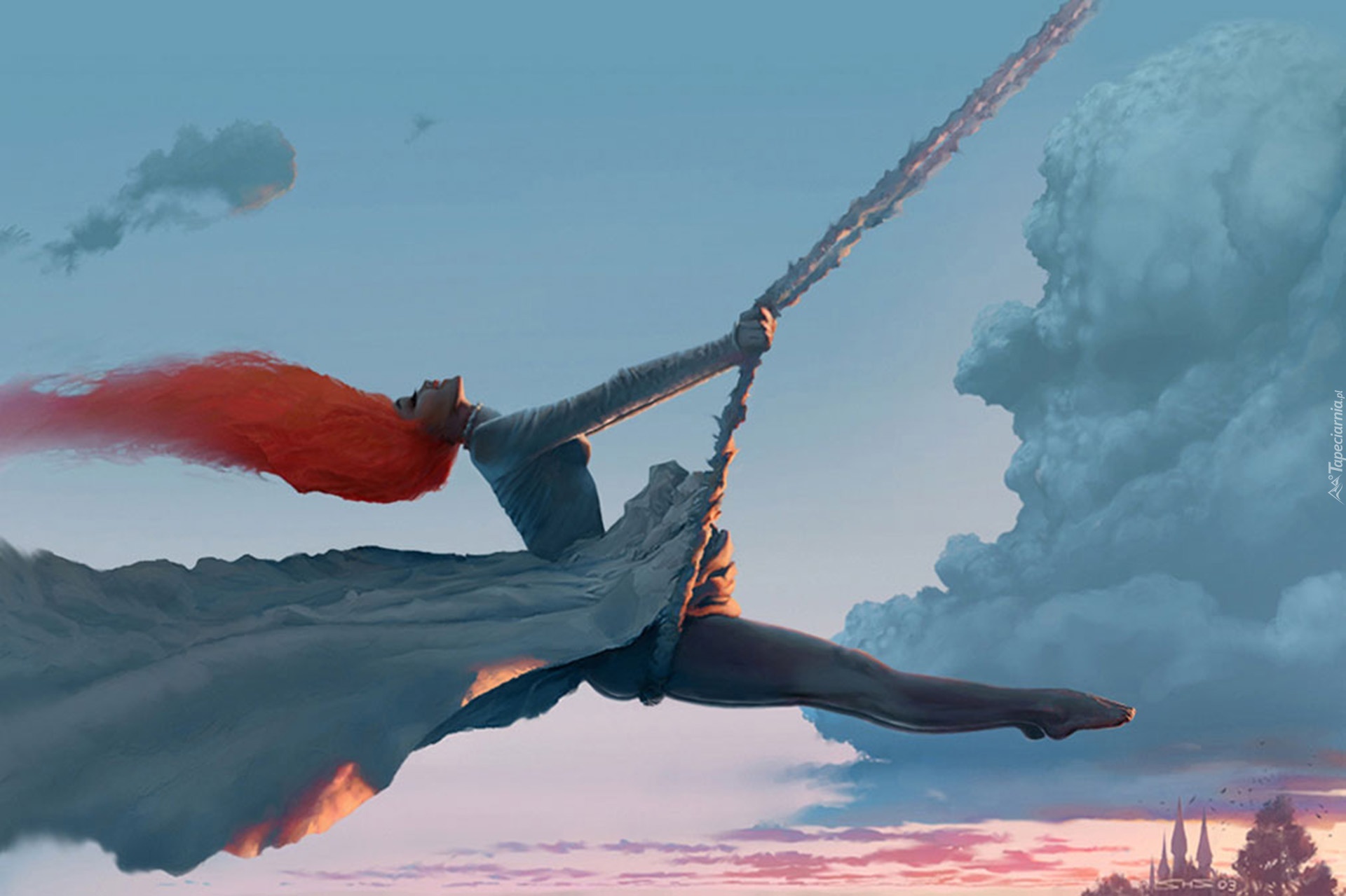Edytor tapety: Kobieta, Ogniste, Włosy, Huśtawka