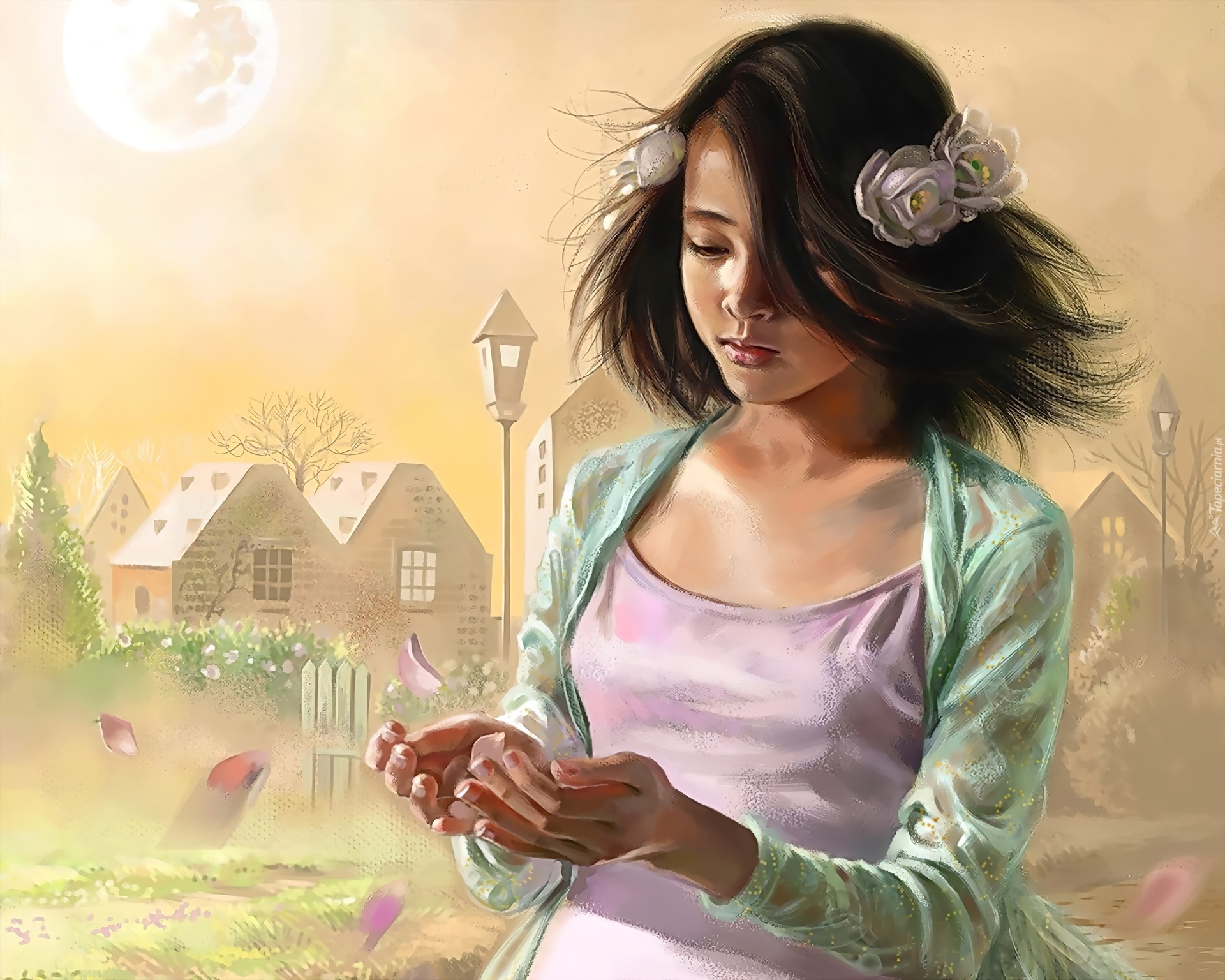Edytor tapety: Mała, Dziewczynka, Kwiatuszki