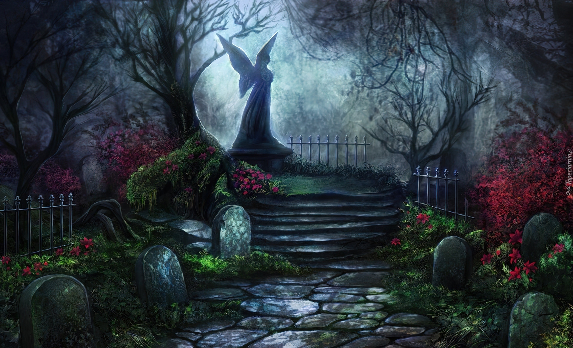 Edytor tapety: Ogród, Anioł, Posąg