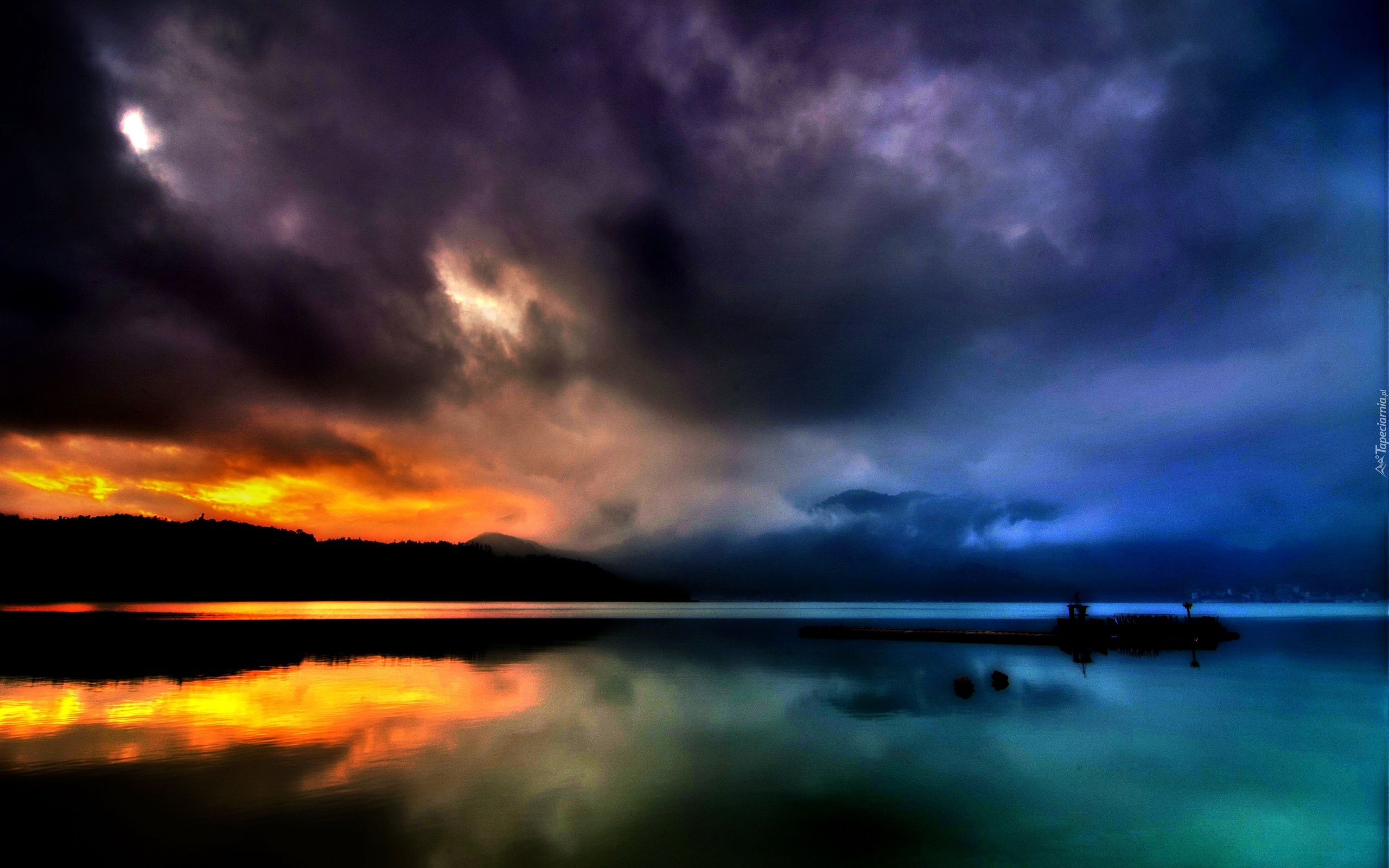 Edytor tapety: Kolorowe, Chmury, Zachód, Słońca