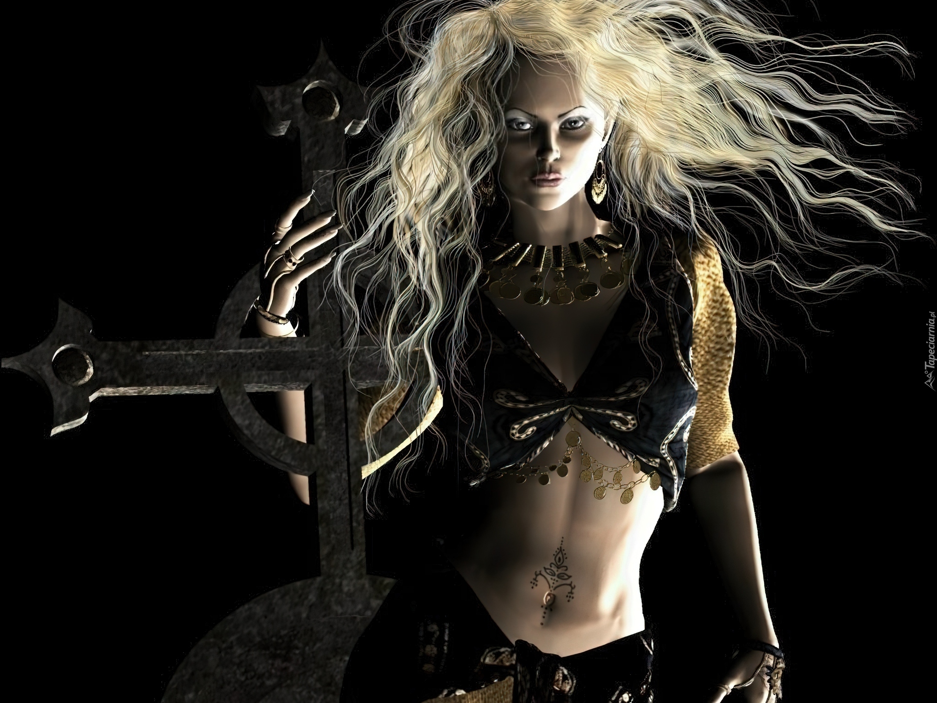 Edytor tapety: Dziewczyna, Naszyjnik, Tatuaż, Pomnik