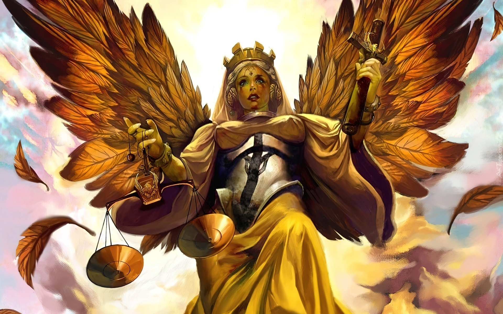 Edytor tapety: Kobieta, Sprawiedliwość, Waga, Pióra