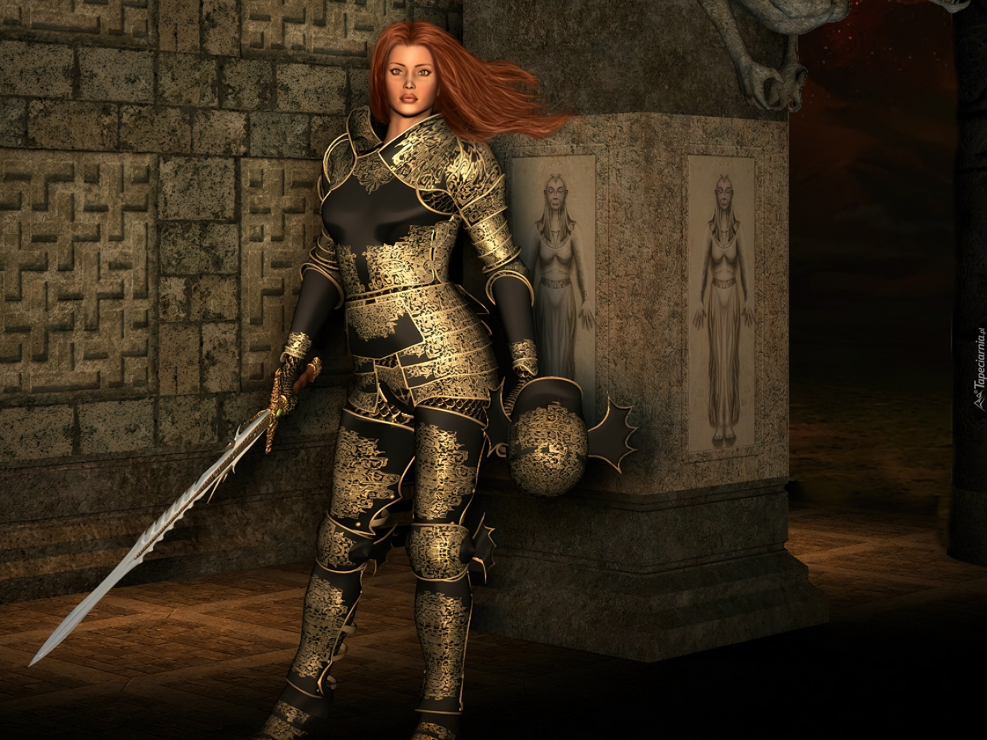 Edytor tapety: Dziewczyna, Rycerz, Zbroja, Miecz