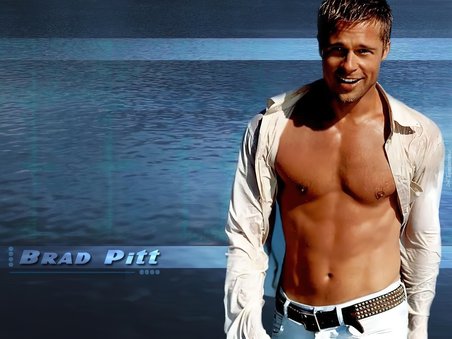 Edytor tapety: Roześmiany, Brad Pitt, Woda