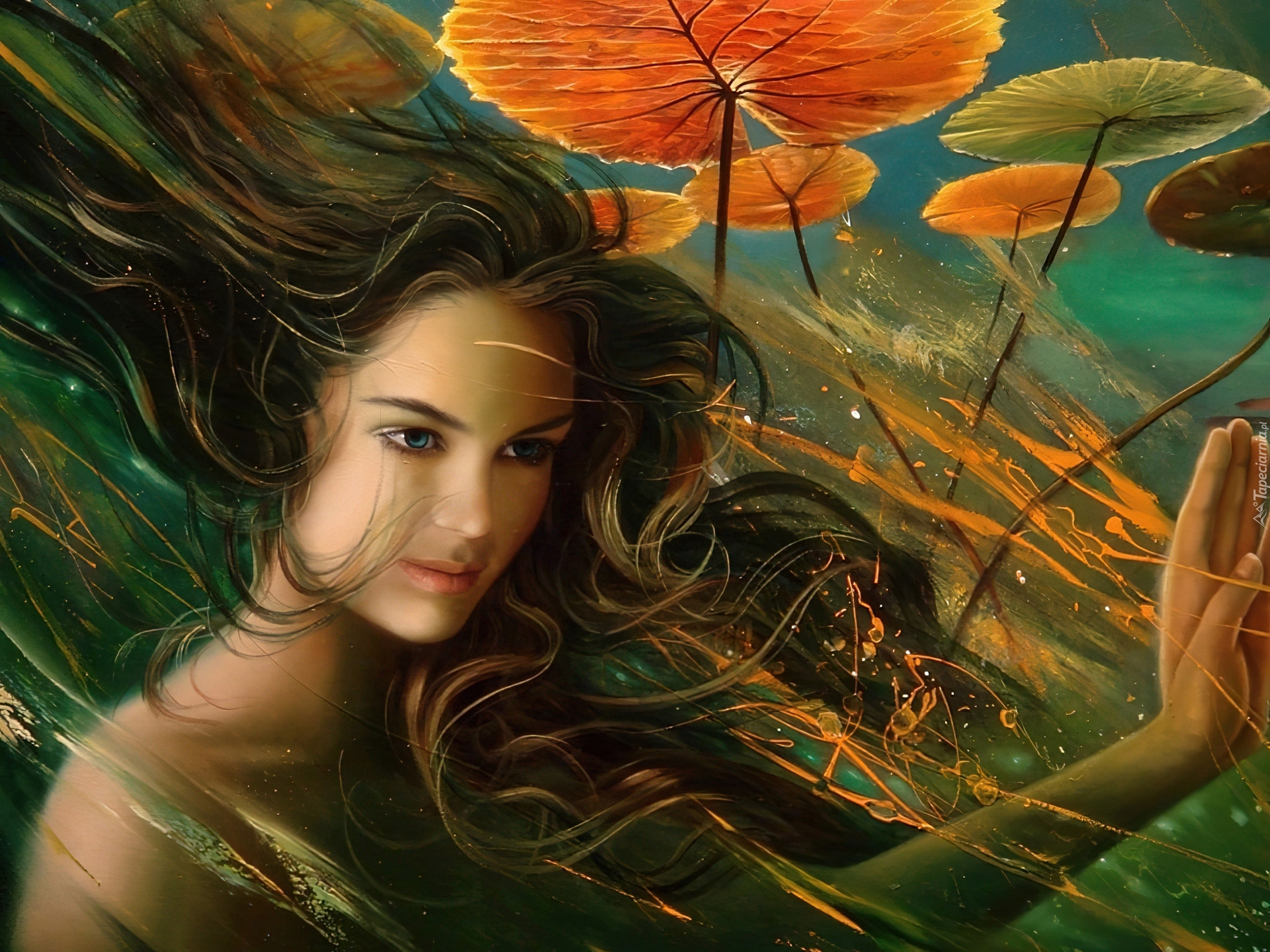 Edytor tapety: Dziewczyna, Liście, Kolory