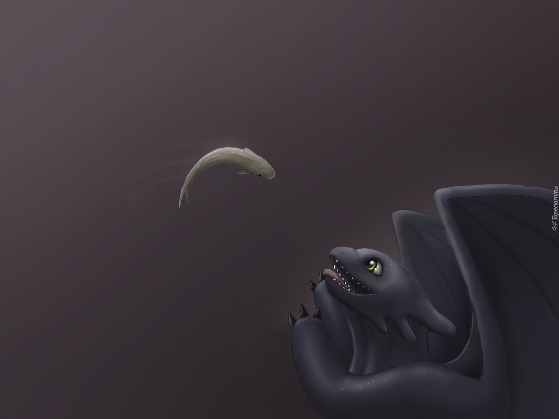 Edytor tapety: Jak wytresować smoka, How to Train Your Dragon, Nocna Furia, Ryba