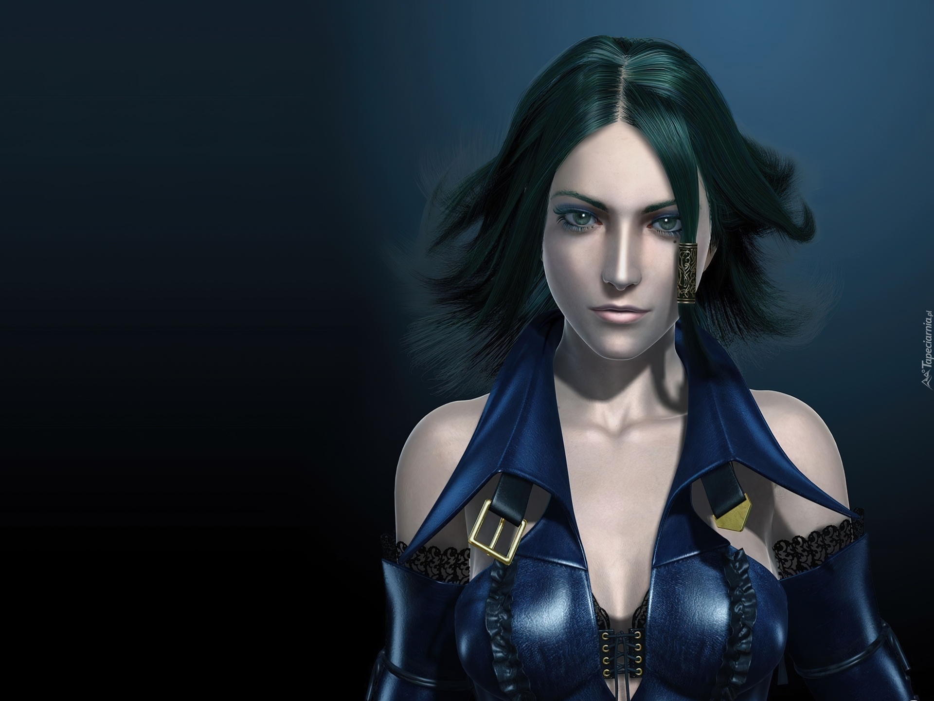 Edytor tapety: Dziewczyna, Spojrzenie, Granatowy, Gorsecik
