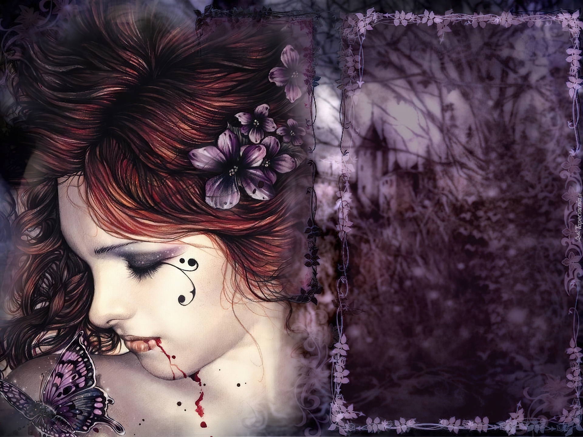 Edytor tapety: Dziewczyna, Motyle, Fiolet