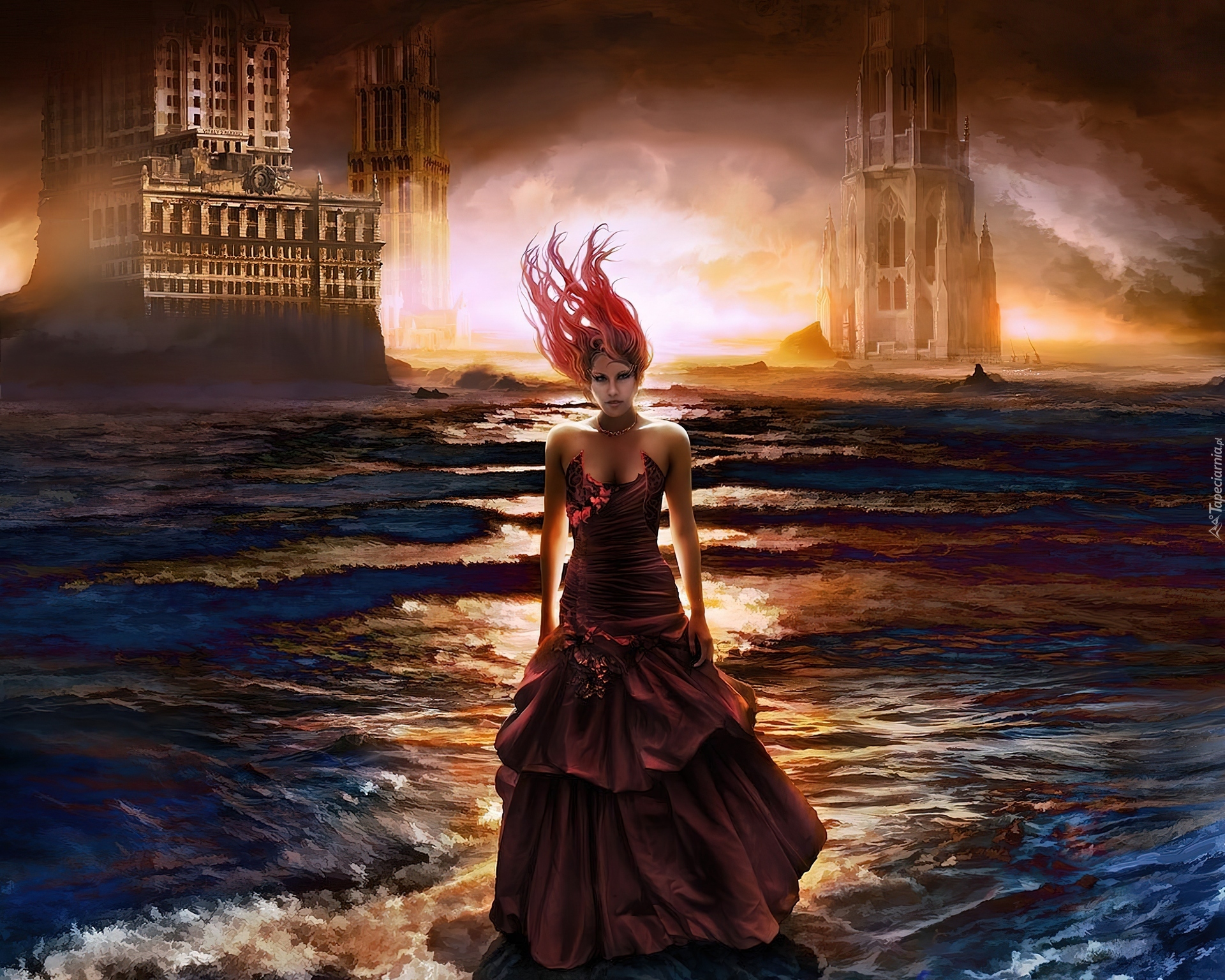 Edytor tapety: Kobieta, Woda, Budynki