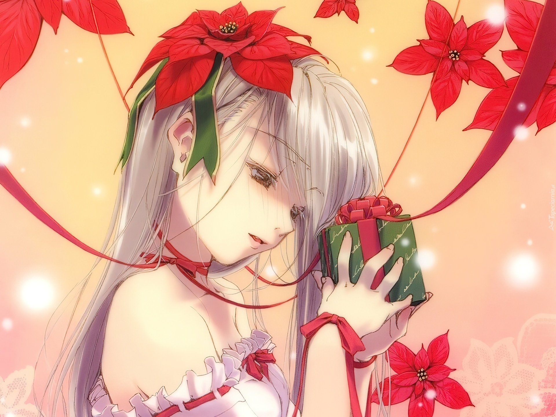 Edytor tapety: Dziewczyna, Kwiaty, Prezent