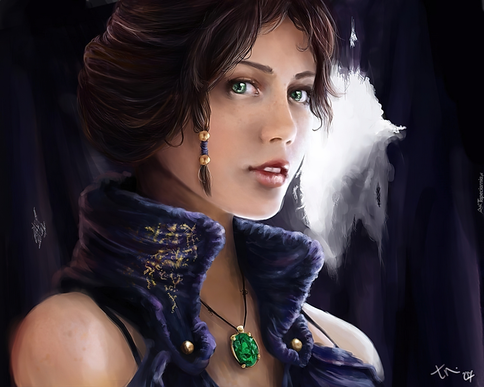 Edytor tapety: Dziewczyna, Zielone, Oczy, Medalion