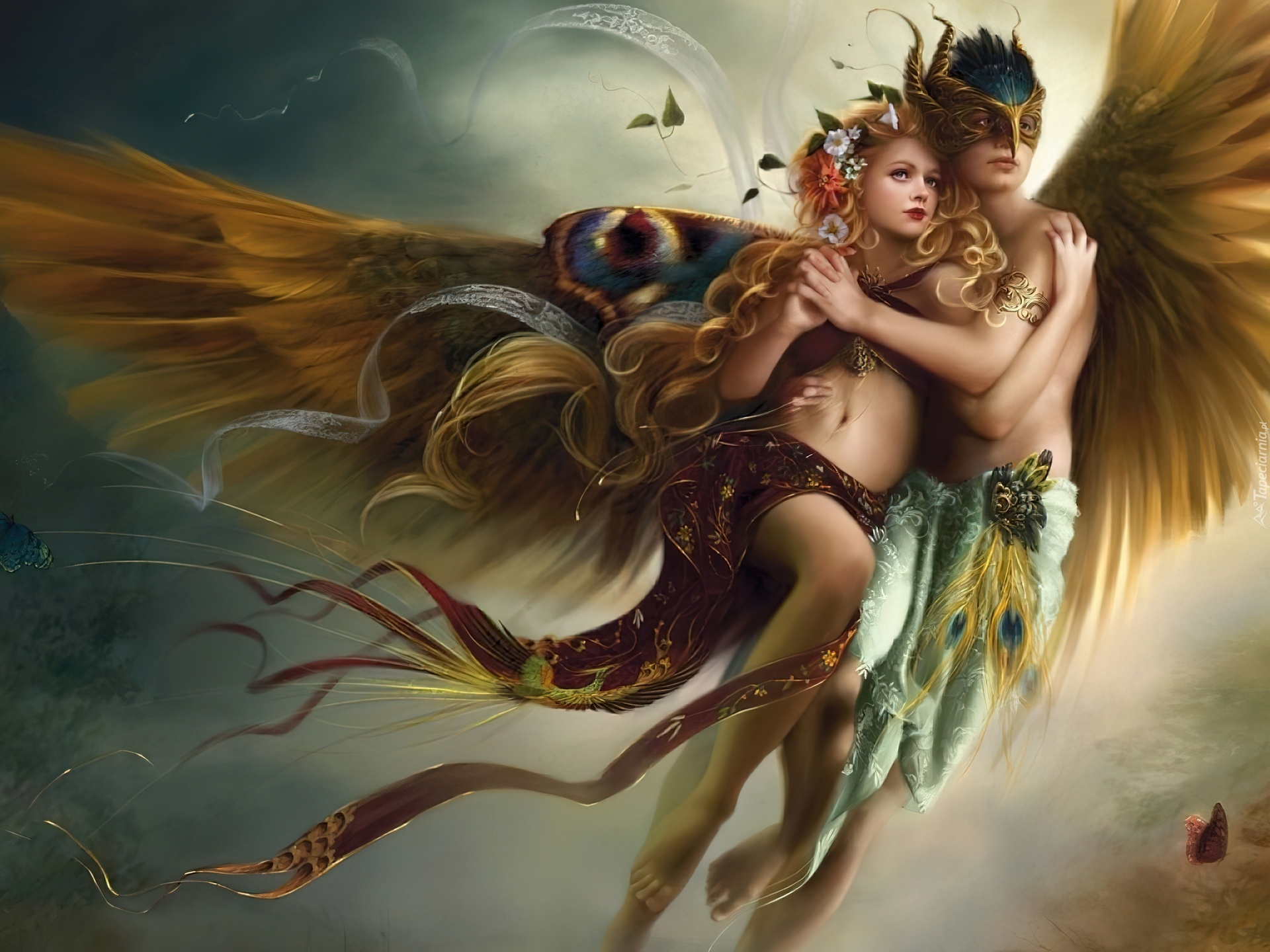 Edytor tapety: Dziewczyna, Chłopak, Skrzydła