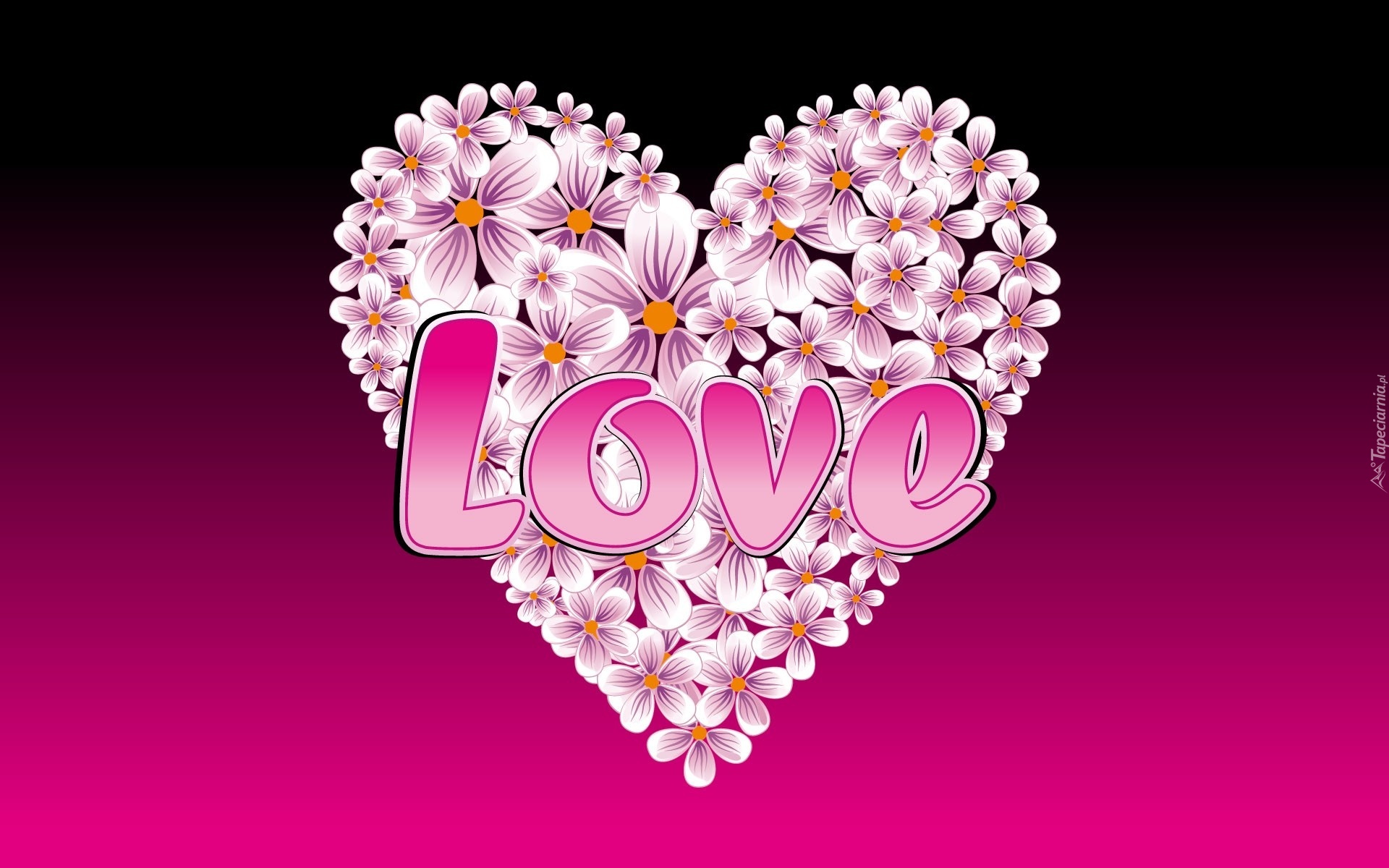 Edytor tapety: Napis, Love, Serce, Kwiaty