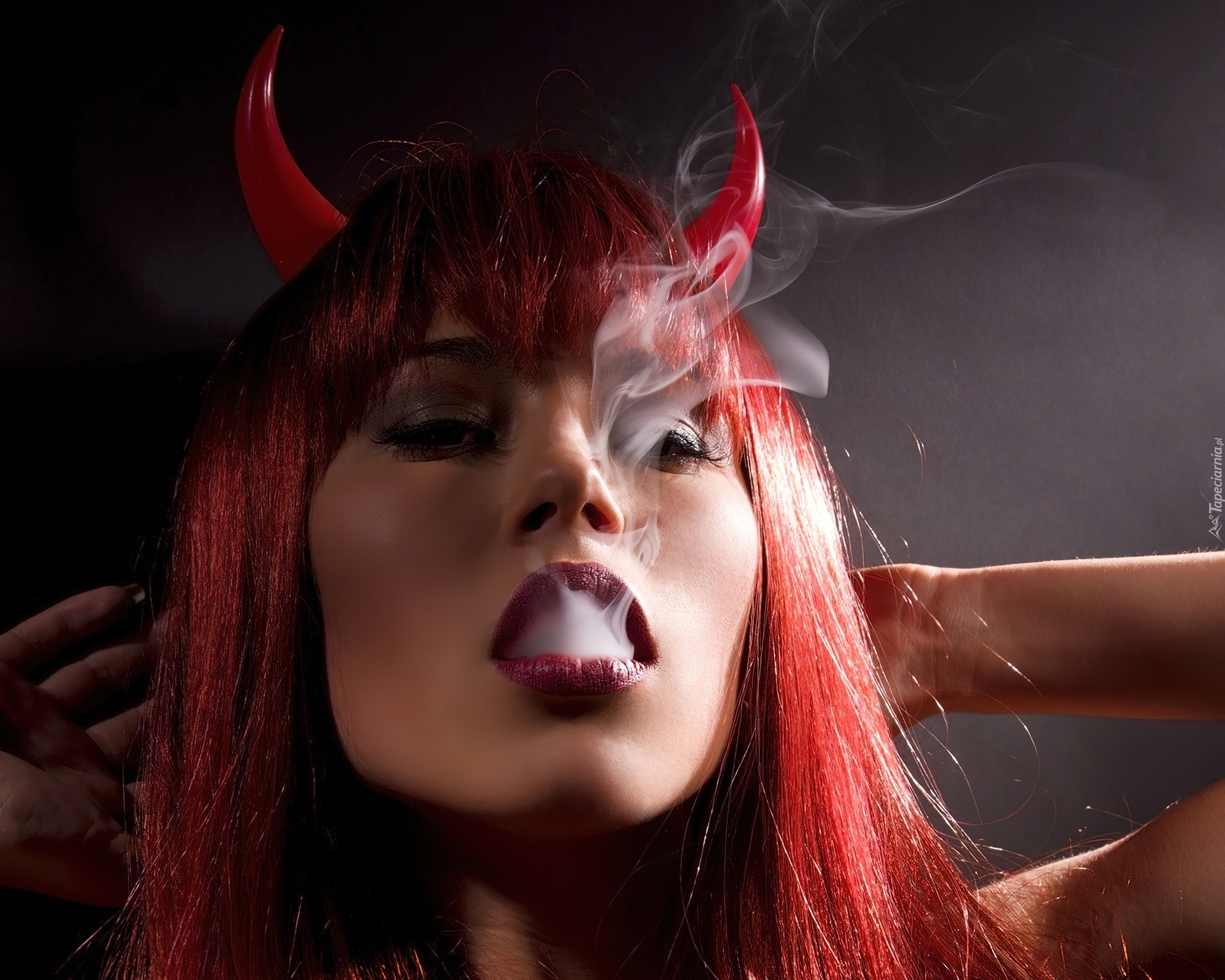 Edytor tapety: Piękna, Diablica, Rogi, Dym