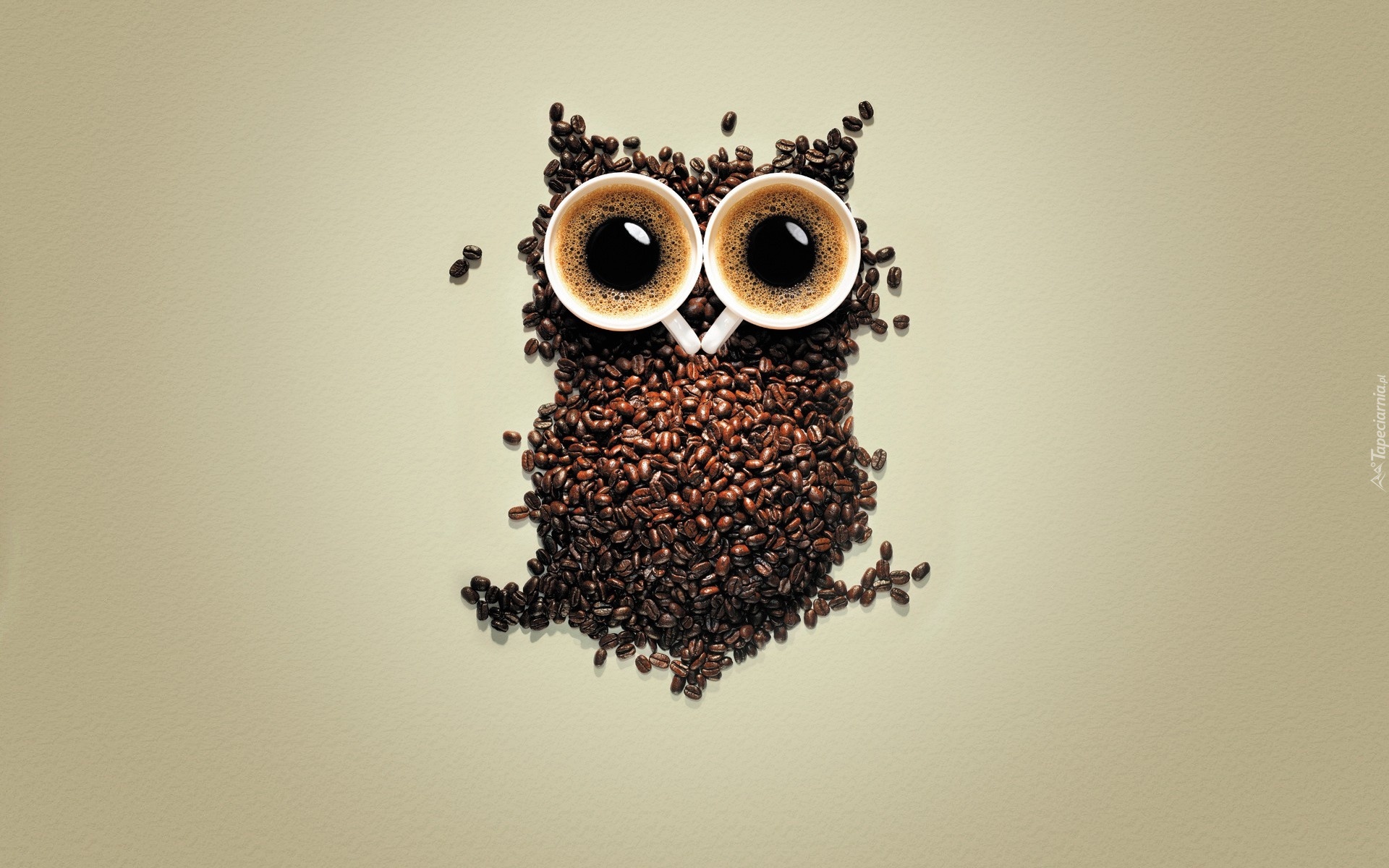 Edytor tapety: Sowa, Ziarna, Kawy, Dwie, Filiżanki