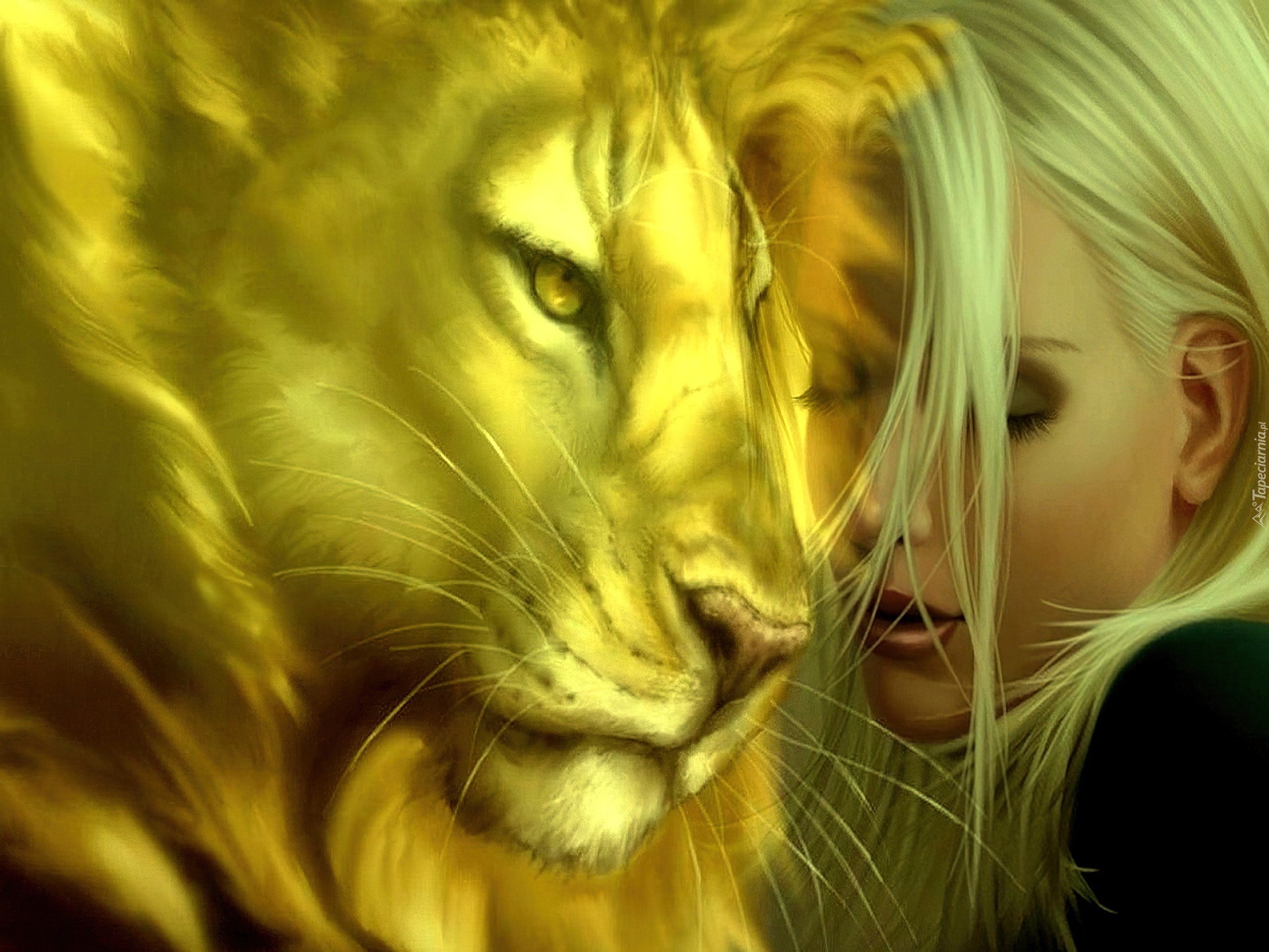 Edytor tapety: Dziewczyna, Lew, Przyjaźń