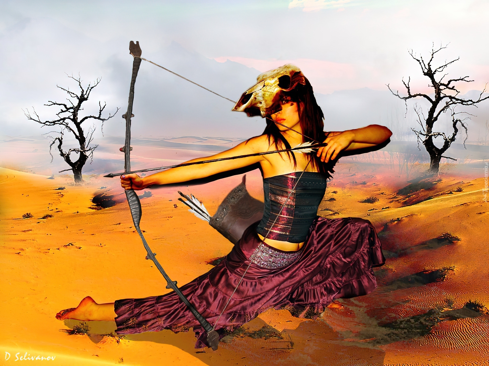 Edytor tapety: Dziewczyna, Pustynia, Łuk, Strzały