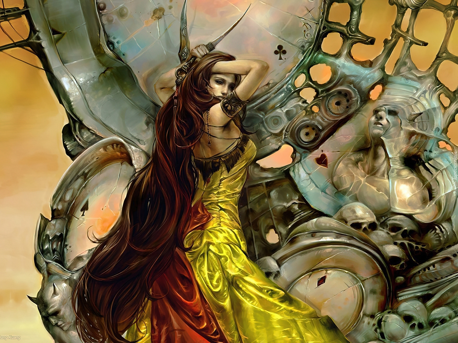 Edytor tapety: Kobieta, Włosy, Sztylet, Sklepienie