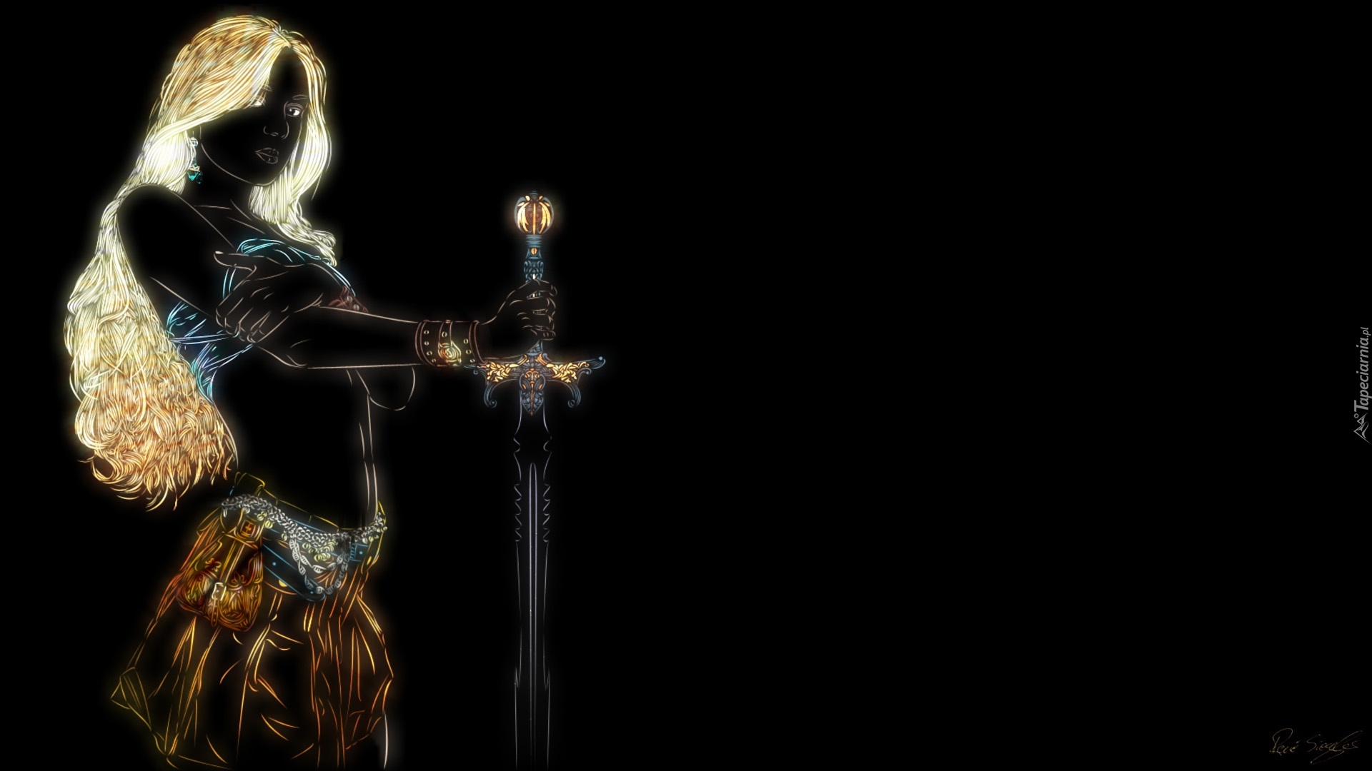 Edytor tapety: Kobieta, Miecz, Grafika