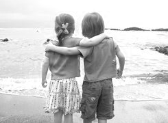 Edytor tapety: Dziewczynka, Chłopiec, Morze