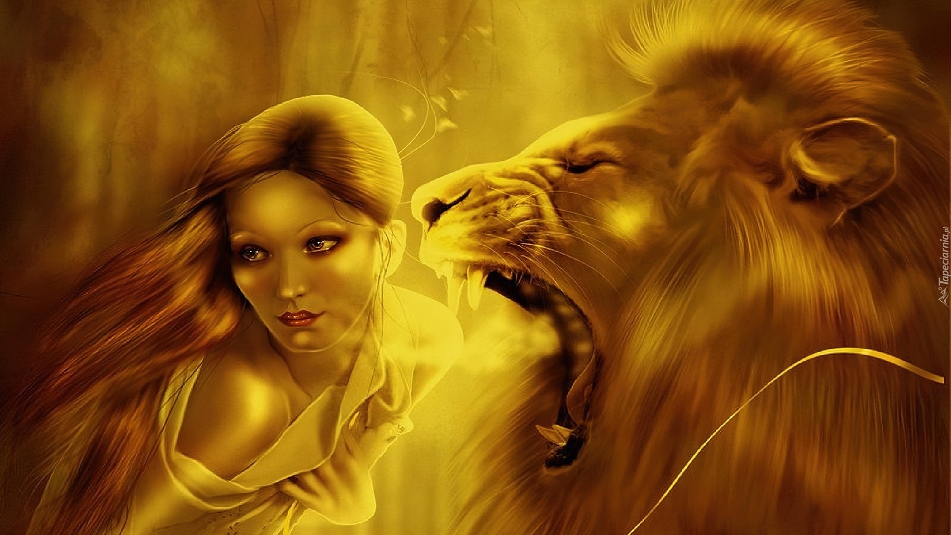 Edytor tapety: Dziewczyna, Ryczący, Lew