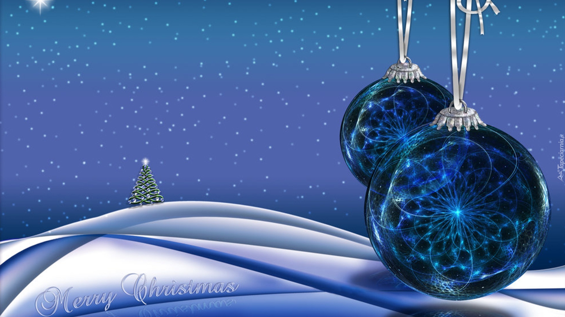 Edytor tapety: Dwie, Niebieskie, Bombki, Choinka